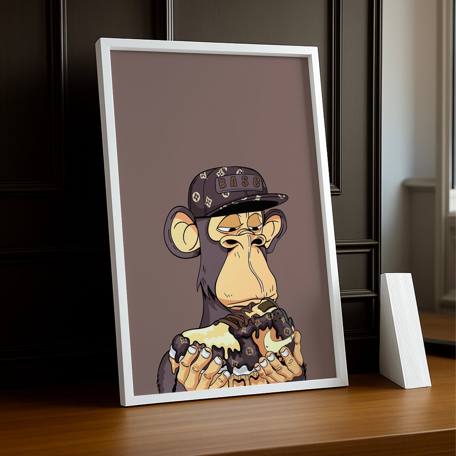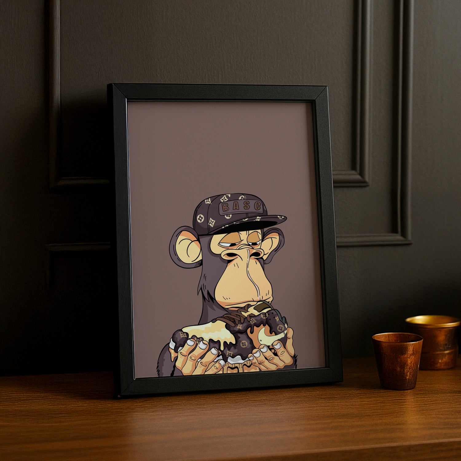 Affichez vos moments préférés de manière unique avec le cadre photo Bayc Ape Nike Air Force 1 x Louis Vuitton. Associez l'iconique design de Nike et Louis Vuitton à votre décoration intérieure et attirez tous les regards. Un mélange audacieux et amusant qui fera de votre maison un lieu stylé et original.