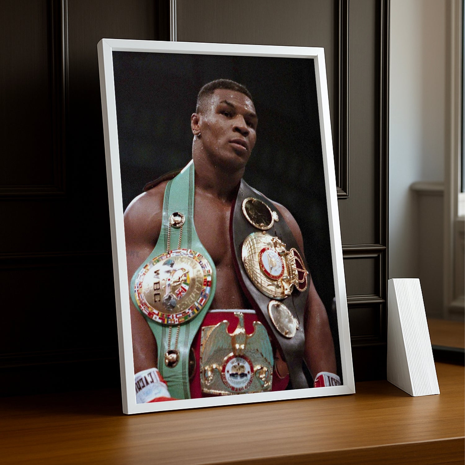 Immortalisez le légendaire Mike Tyson dans toute sa gloire avec ce cadre photo dédié à la boxe ! Parfait pour les fans de sport et les amateurs de légendes du ring, ce cadre capture l'essence brute et l'intensité du champion. Que vous soyez passionné de boxe ou admirateur du style Tyson, ce cadre transforme votre espace en véritable galerie de champions. Un incontournable pour décorer votre chambre, bureau ou salle de sport avec une touche de puissance et de prestige.