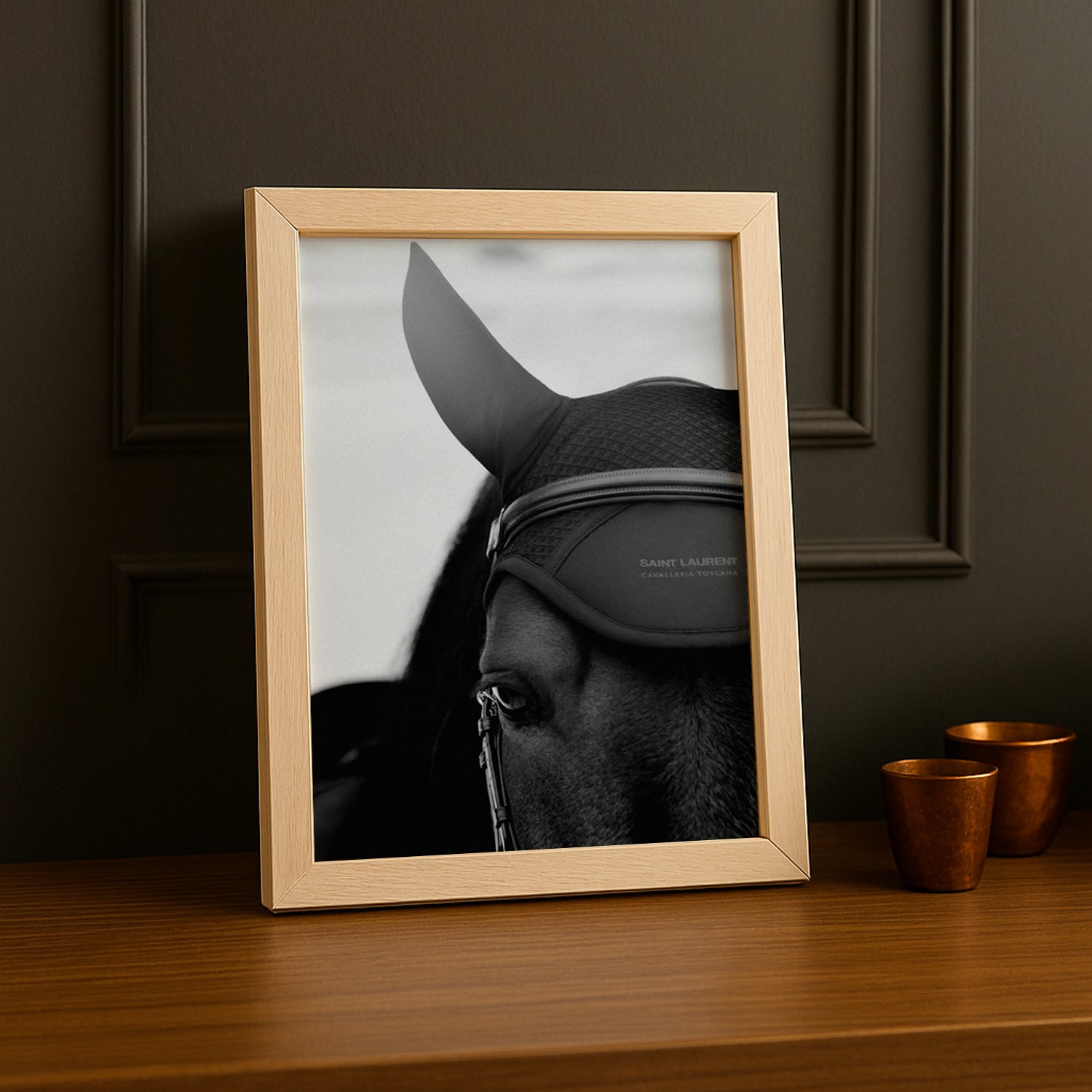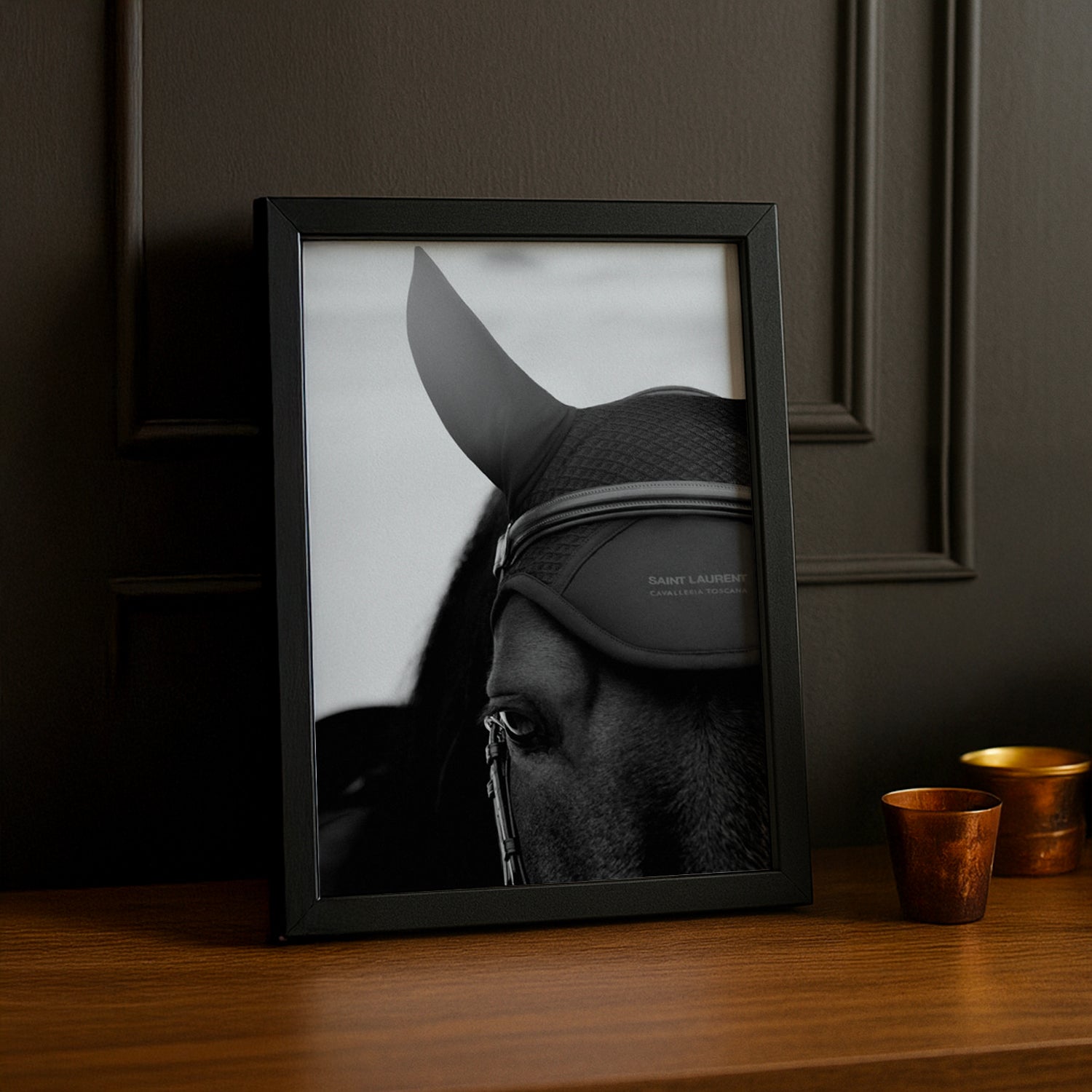 Apportez une touche de haute couture à votre passion équestre avec ce cadre photo au style Saint Laurent ! Alliant sophistication parisienne et élégance équestre, ce cadre transforme vos photos en véritable accessoire de mode. Parfait pour les cavaliers fashion-forward, il apporte du prestige à votre décoration. À installer dans votre chambre ou votre bureau pour un effet glamour et tendance !