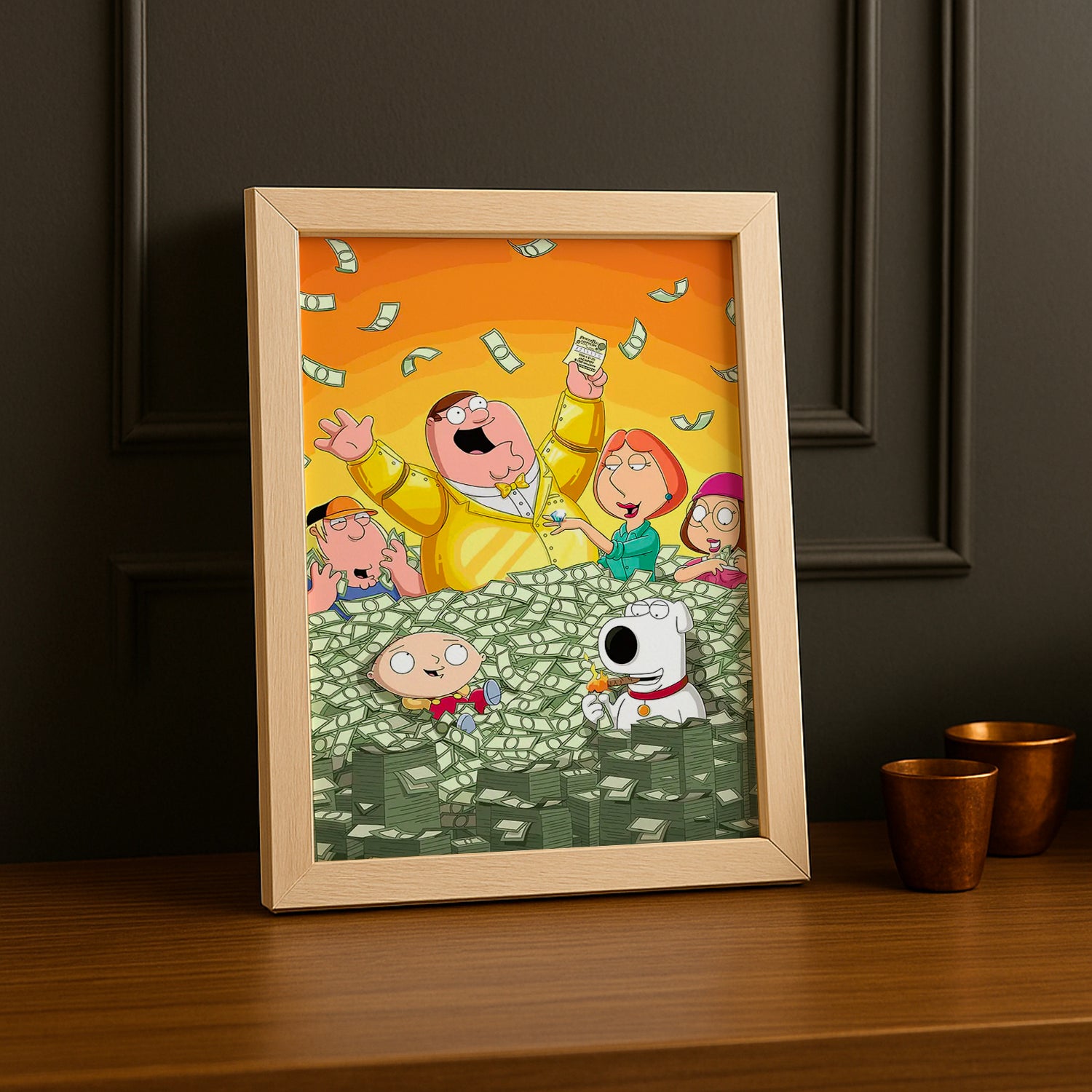 Affichchez vos photos avec style et une bonne dose d'humour financier grâce à ce cadre photo Family Guy Dollars ! Inspiré par les moments les plus hilarants de la série, ce cadre apporte une touche de richesse comique à votre décoration. Parfait pour les fans qui rêvent de fortune ou qui adorent simplement l'absurdité de la série, il transforme vos clichés en véritable déclaration d'amour pour l'argent et le rire. Un accessoire original qui fera sourire tous ceux qui le découvriront !