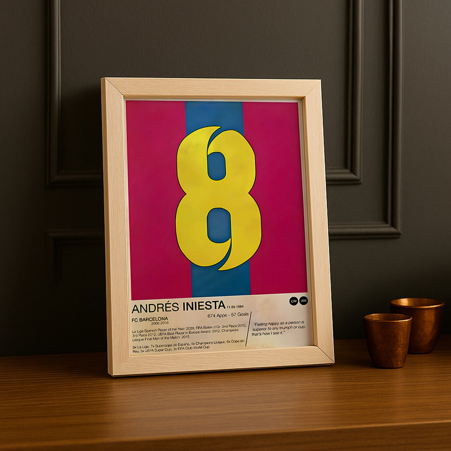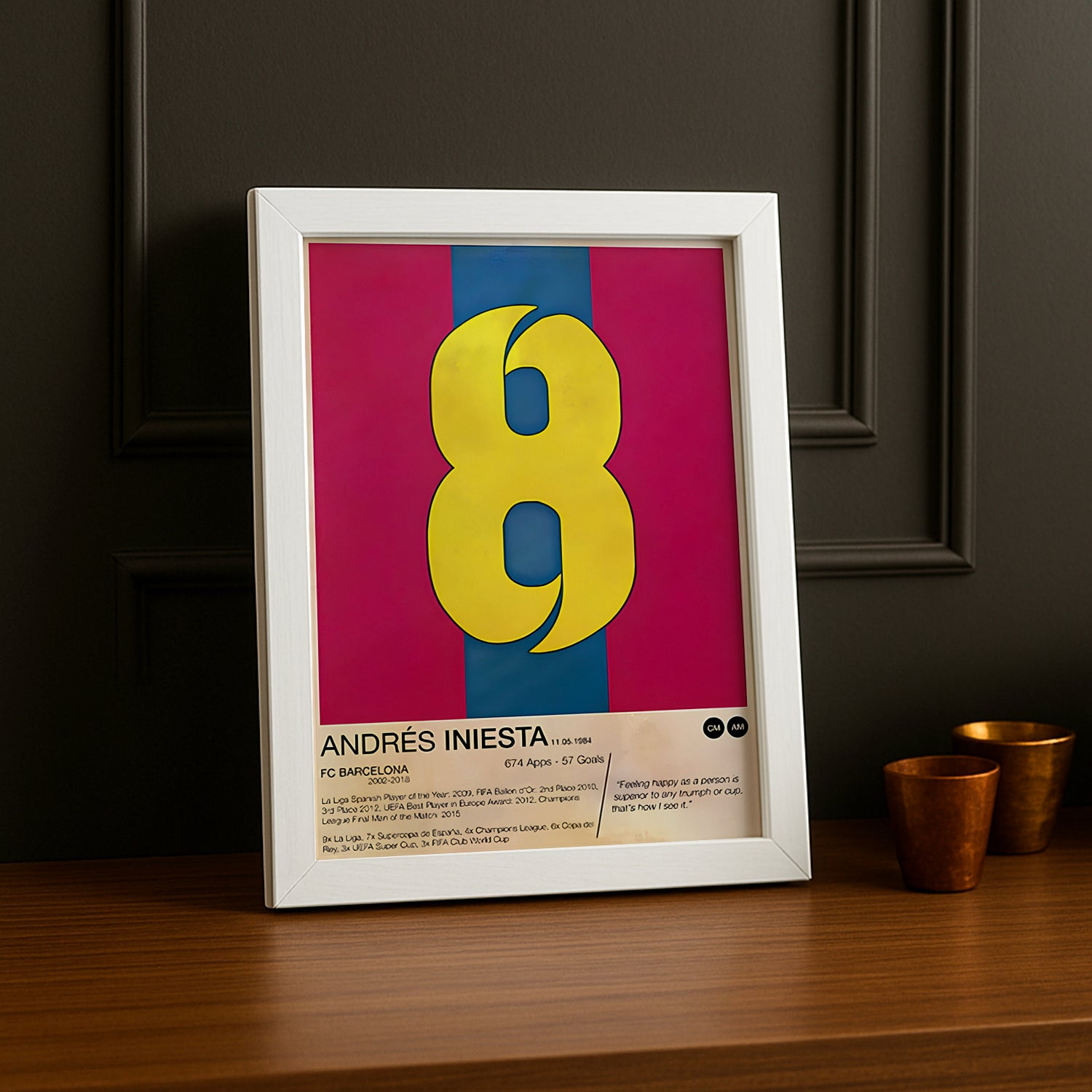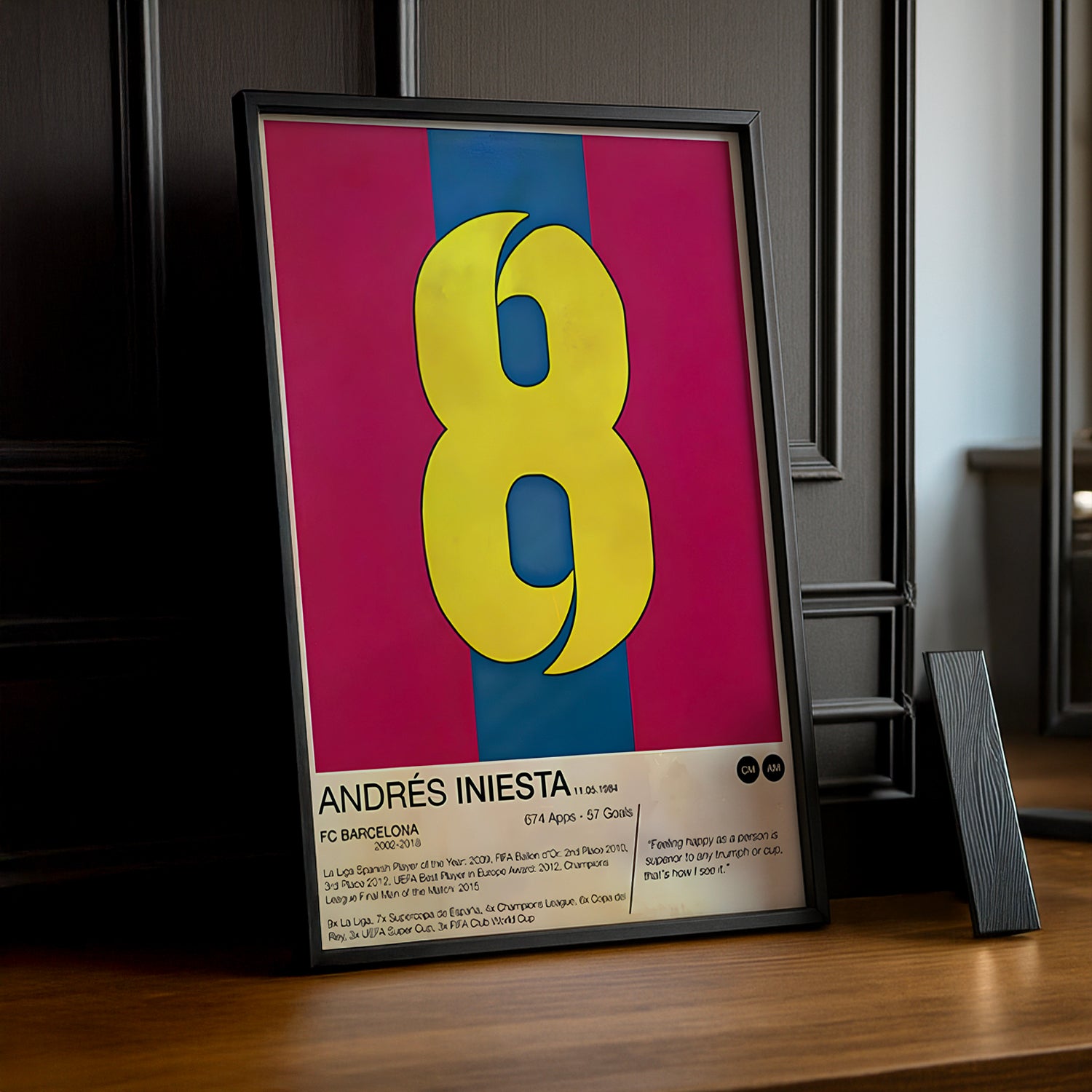 Ajoutez une Touche de Magie et d’Histoire à Votre Décor Que vous soyez un fervent supporter du FC Barcelone, un admirateur du style de jeu d’Iniesta, ou un passionné de football légendaire, ce cadre est un ajout parfait à votre espace ou un cadeau inoubliable.