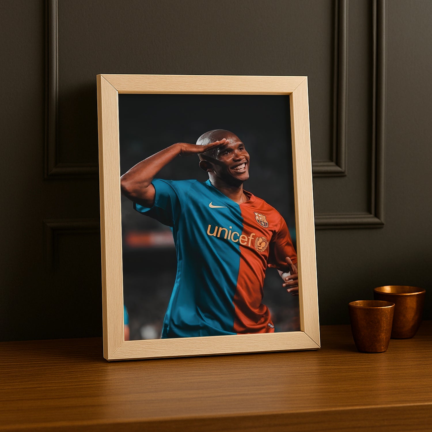 Faites entrer la légende Samuel Eto'o dans votre intérieur avec ce poster encadré du FC Barcelone. Parfait pour les fans qui aiment allier style et souvenirs de grands exploits, ce poster apporte une dose de fun et d’énergie à votre déco tout en rendant hommage à un icône du club.