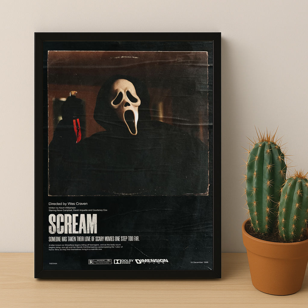 Ajoutez un frisson de fun à votre déco avec le poster Scream ! Ce poster iconique mêle suspense et humour, parfait pour les amateurs de sensations fortes qui aiment garder une touche ludique. Une pièce qui fera crier de plaisir vos murs et vos invités !