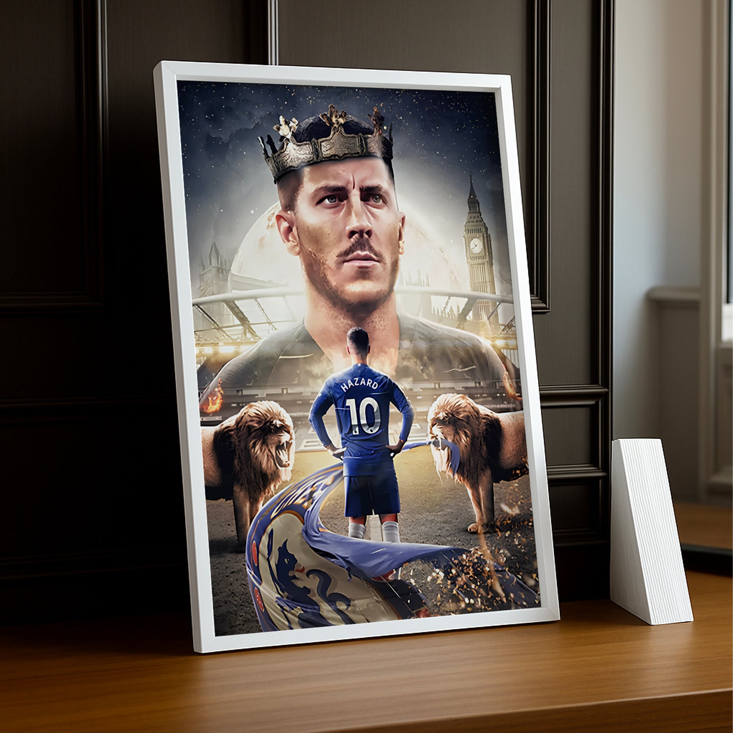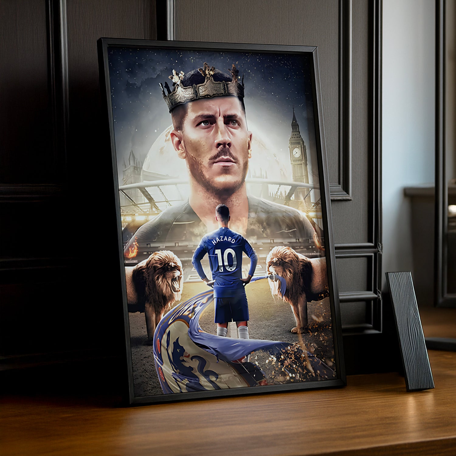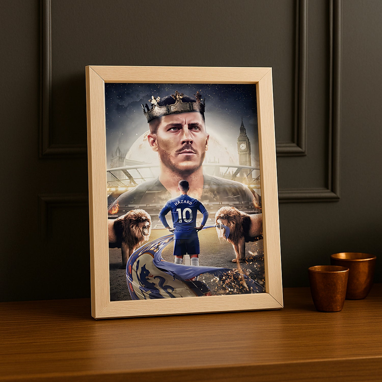 Un Chef-d'Œuvre Pour les Fans de Football et de Dribbles Envoûtants Affichez votre passion pour Eden Hazard, l’un des joueurs les plus talentueux et créatifs de sa génération, avec ce cadre photo impressionnant ! Imprimé en haute définition, chaque détail capture sa finesse technique, ses dribbles électrisants et ses exploits légendaires avec Chelsea, le Real Madrid, et l’équipe nationale de Belgique. Parfait pour ajouter une touche de créativité et d’élégance à votre salon, bureau ou espace de jeu.