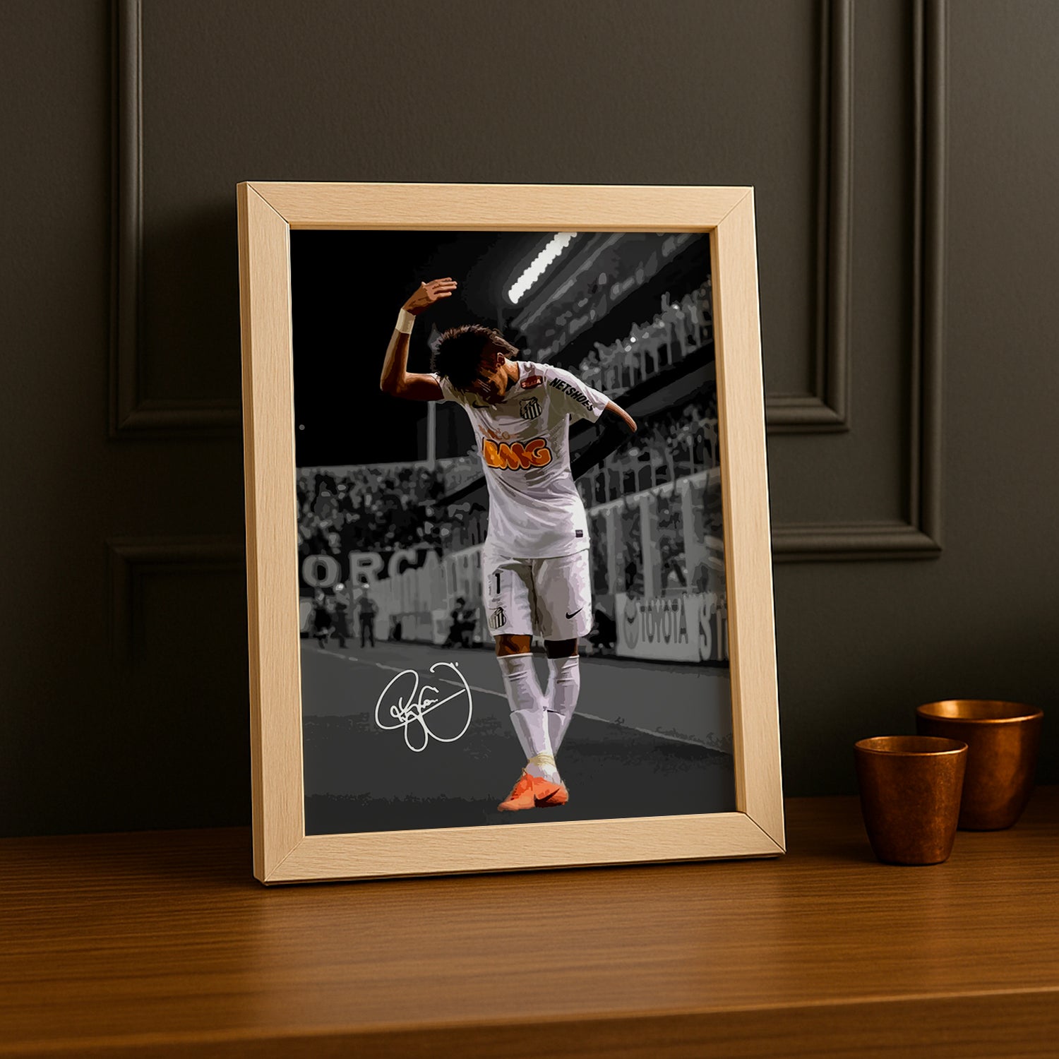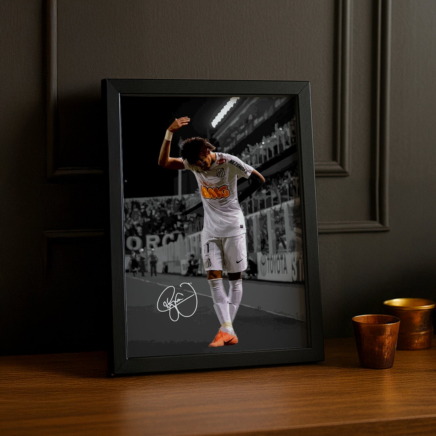 Immortalisez l'énergie et la magie du football avec ce cadre photo dédié à Neymar da Silva Santos Júnior ! Parfait pour les fans passionnés, ce cadre met en avant le talent et le charisme du légendaire ailier brésilien. Que vous soyez supporter du PSG, du FC Barcelone ou simplement admirateur de son jeu spectaculaire, ce cadre apportera une touche de dynamisme et de couleur à votre intérieur. Idéal pour décorer une chambre, un bureau ou un espace dédié à votre passion pour le football. Un incontournable pour tous les amoureux du ballon rond !