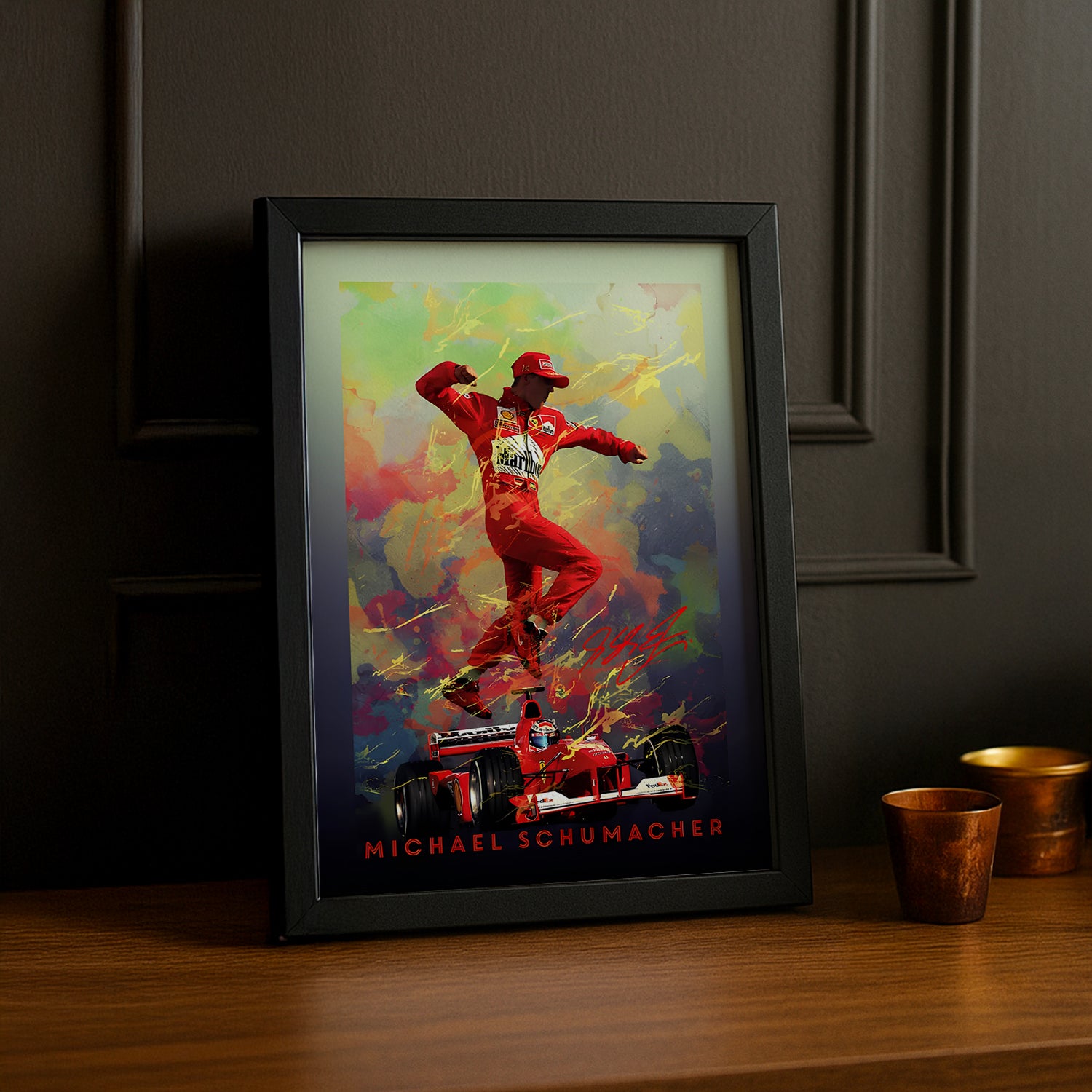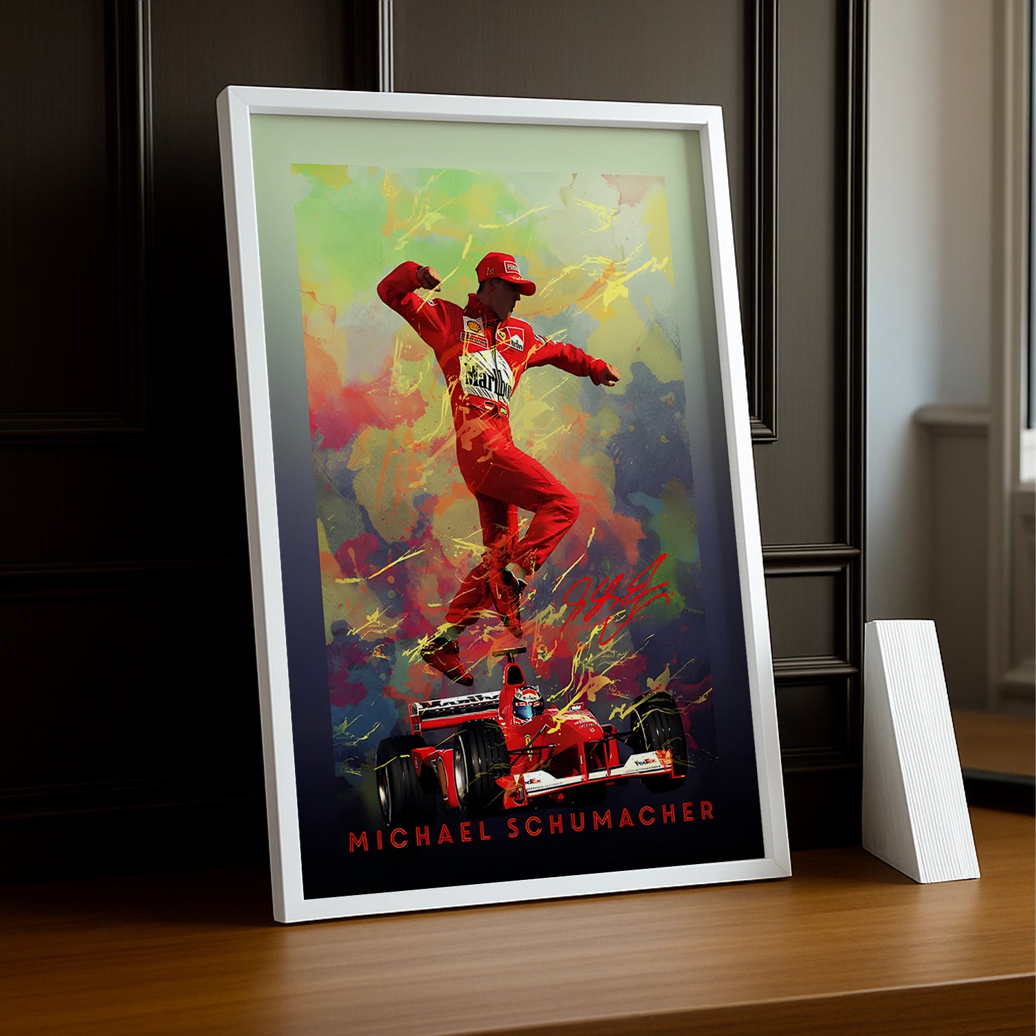 Affichez votre respect et admiration pour Michael Schumacher, l'un des plus grands pilotes de l'histoire de la Formule 1, avec ce cadre photo mémorable ! Imprimé en haute définition, ce cadre capture l'intensité, la détermination et l'exceptionnelle carrière de Schumacher, tout en mettant en lumière ses moments les plus iconiques sur les circuits. Ses sept titres mondiaux et son héritage en F1 sont immortalisés dans chaque détail de cette image.