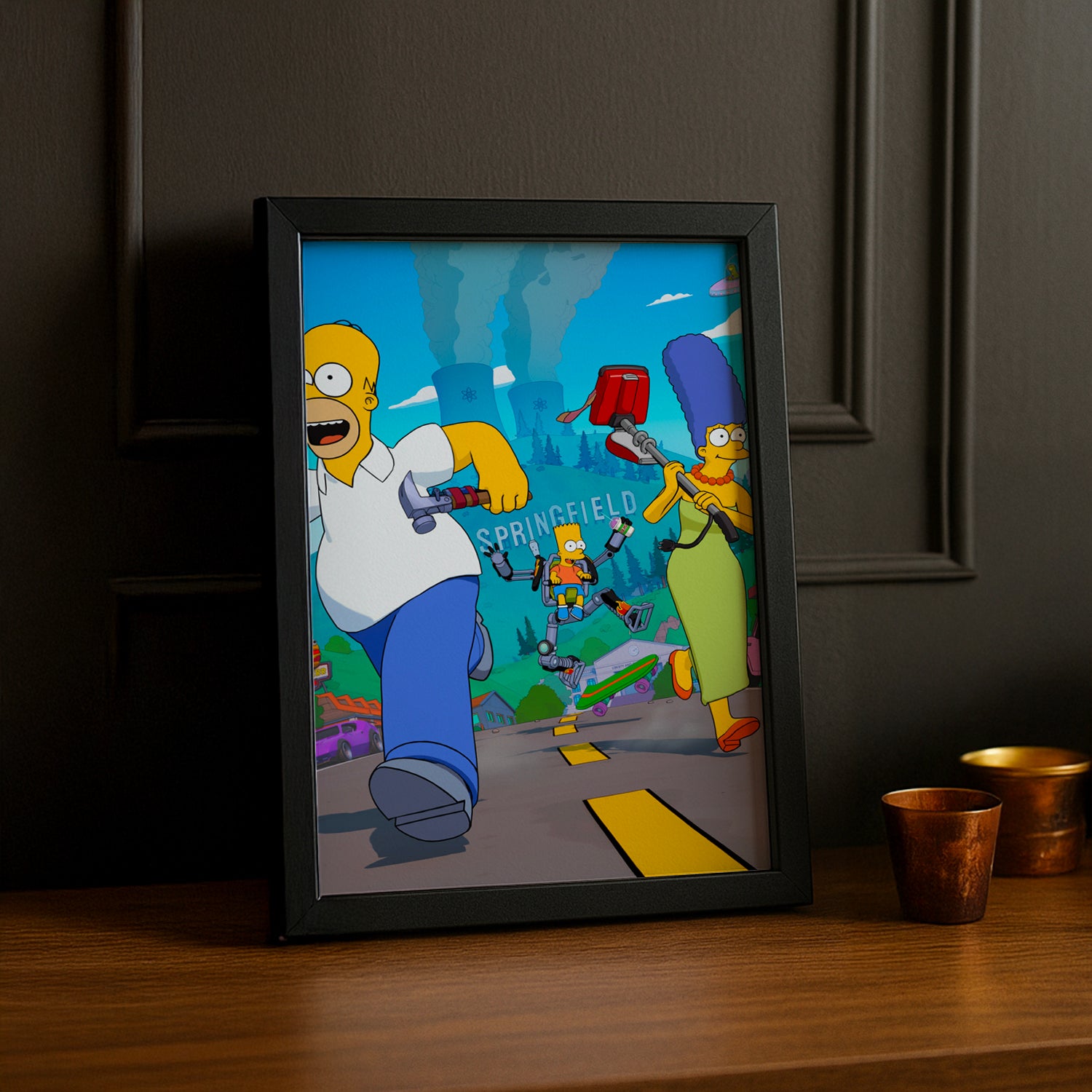 Fusionnez deux univers cultes avec ce cadre photo Fortnite - Les Simpsons ! Un crossover hilarant qui réunit le gaming épique et l'humour intemporel de la famille jaune. Ce cadre original célèbre la collaboration entre deux phénomènes pop culture, parfait pour les fans qui adorent les références décalées. Affichez vos photos avec une touche de nostalgie et de fun garantis pour faire sourire tous vos visiteurs !