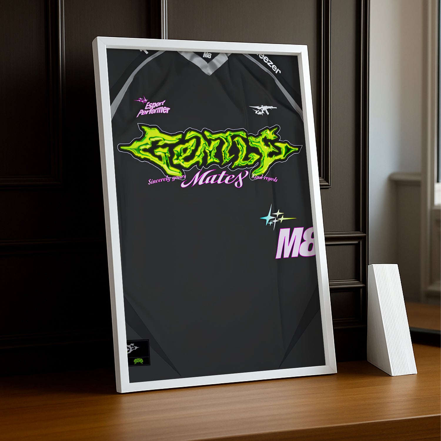 Affichez Votre Fierté Gaming Que vous soyez un fan dévoué de Gentle Mates ou un passionné de compétitions d'eSport, ce cadre est l'ajout parfait pour votre collection ou un cadeau idéal pour un amateur d'eSport.