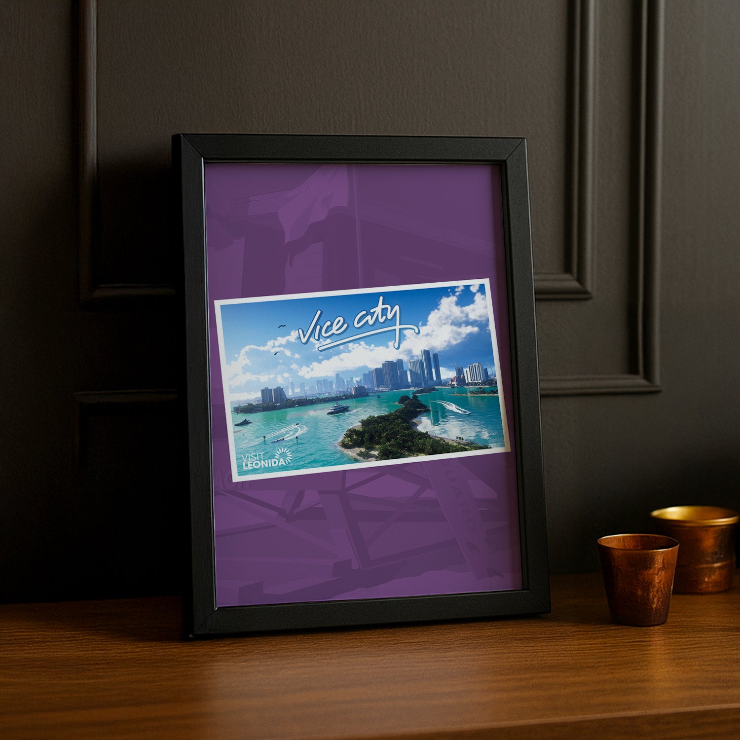 Plongez dans l’ambiance rétro et déjantée de Vice City avec le Poster Grand Theft Auto VI - Vice City. Ce poster coloré et énergique capture parfaitement l’esprit festif et audacieux de cette ville mythique, idéal pour les fans qui souhaitent ajouter une dose de fun et de nostalgie à leur décoration. Parfait pour animer un mur avec style et bonne humeur.