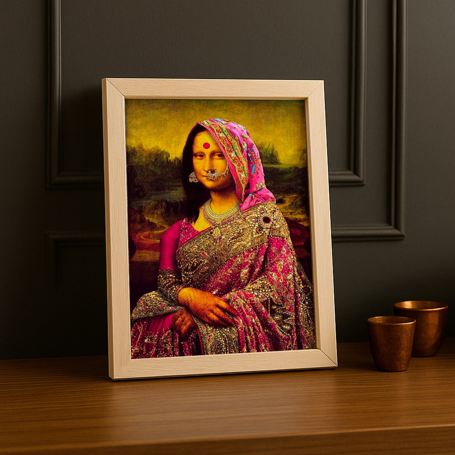 Voyagez à travers les continents avec ce cadre photo enchanteur ! Mona Lisa s'invite en Inde, parée des couleurs vibrantes et de l'exotisme de ce pays fascinant. Ce cadre célèbre la fusion des cultures, mêlant l'élégance florentine aux teintes chaudes et aux motifs inspirés de l'Inde. Idéal pour les voyageurs, les amoureux de diversité culturelle et ceux qui rêvent d'aventures lointaines. Un décor poétique qui raconte une histoire de rencontres entre mondes !
