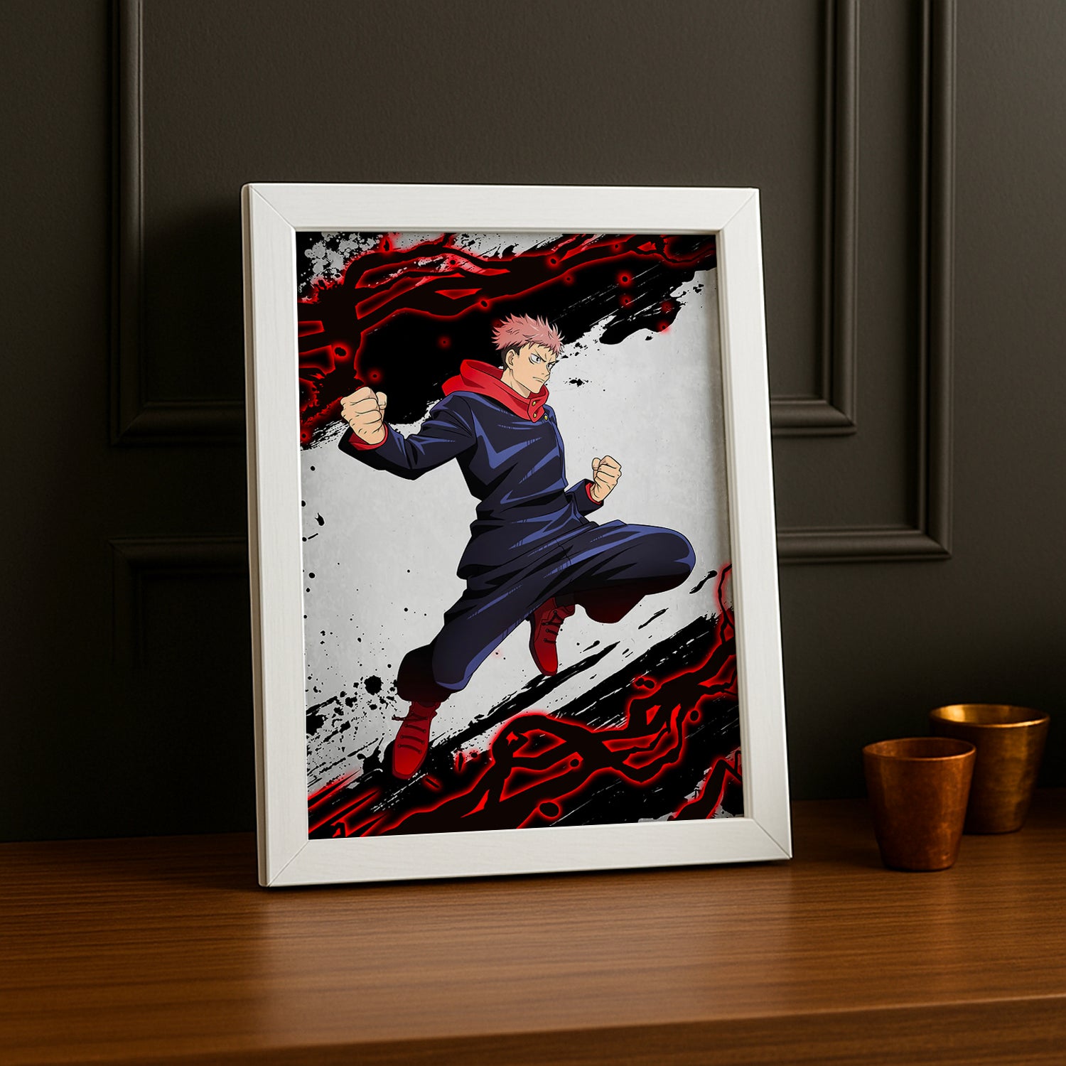 Célébrez le héros au grand cœur avec ce cadre photo dynamique dédié à Itadori Yuji de Jujutsu Kaisen ! Du lycéen ordinaire au porteur du roi des malédictions, ce personnage incarne la détermination et la bienveillance. Avec ses couleurs chaleureuses et son design énergique, ce cadre capture l'essence optimiste et combative du protagoniste. Idéal pour les fans qui admirent son évolution remarquable et son esprit indomptable, il apporte une touche d'inspiration et de passion à votre décoration. Affiche ton soutien à Yuji et laisse son courage briller sur tes murs !