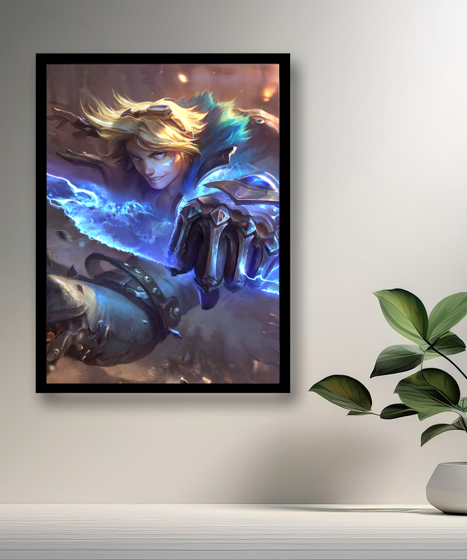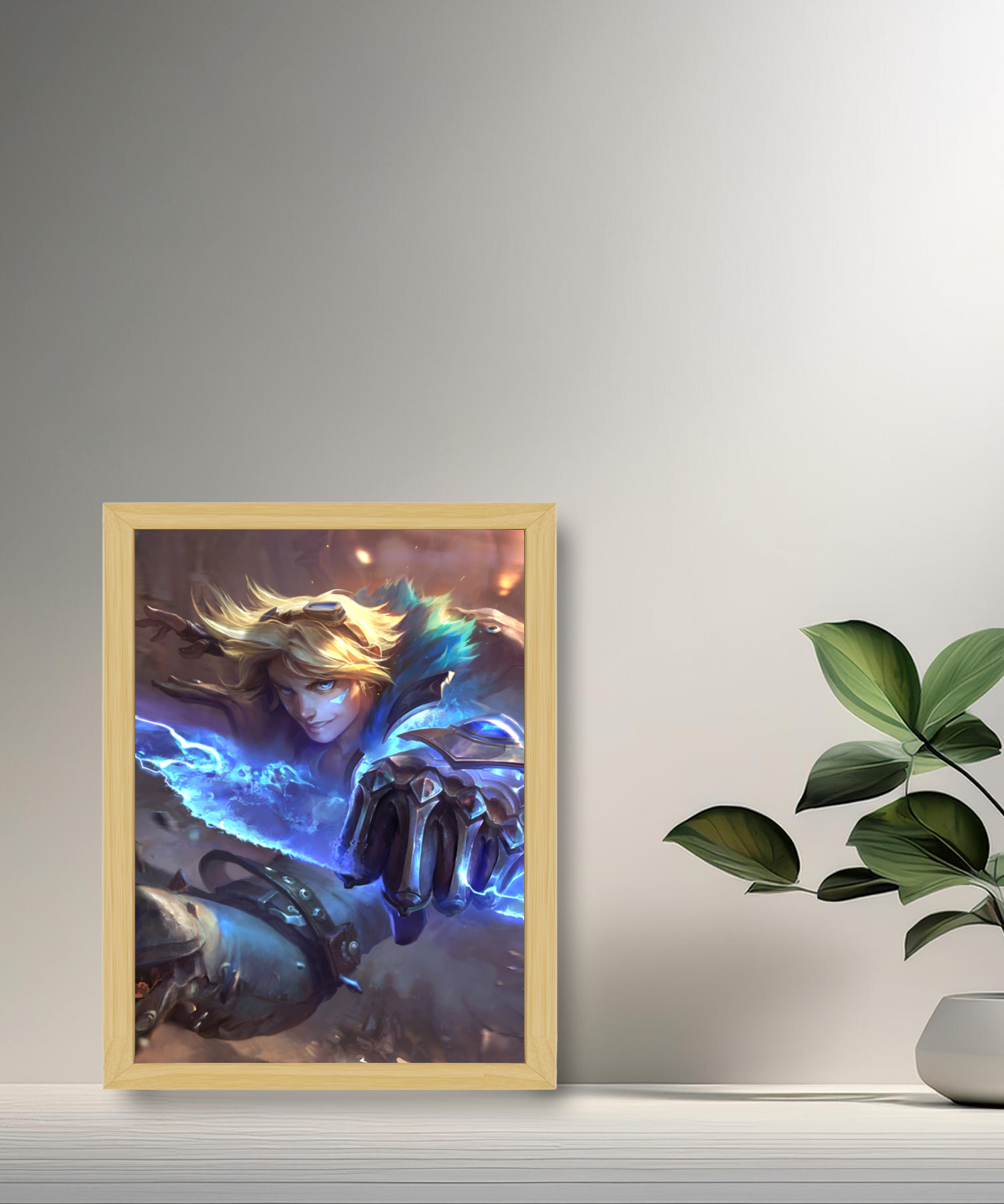 Dieser Bilderrahmen ist ideal für League of Legends- Fans und Liebhaber von Charakteren, die Charisma und Tapferkeit vereinen. Er ist ein künstlerisches Stück, das jedem Raum eine dynamische und faszinierende Note verleiht. Ob im Wohnzimmer, Schlafzimmer, Büro oder in der Spielecke, dieser Ezreal-Fotorahmen verleiht Ihrer Dekoration Stil, Originalität und eine Atmosphäre der Entdeckung.