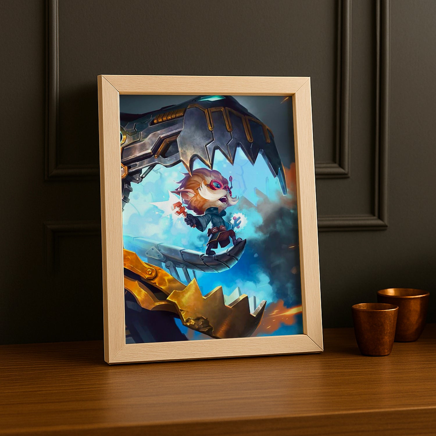 Laissez libre cours à votre créativité avec ce cadre photo dédié à Heimerdinger, le Révolutionnaire de Zaun de League of Legends ! Inspiré par le génie inventif du petit yordle, ce cadre combine ingéniosité et style pour transformer vos photos en véritables chefs-d'œuvre technologiques. Idéal pour les fans qui adorent l'innovation et l'humour, il apporte une touche farfelue et attachante à votre décoration gaming. Que vous y affichiez vos moments épiques en partie, un souvenir amusant avec vos amis ou simplement une photo qui vous fait sourire, ce cadre Heimerdinger garantit une ambiance ludique et inspirée. Un accessoire parfait pour les vrais inventeurs de fun !