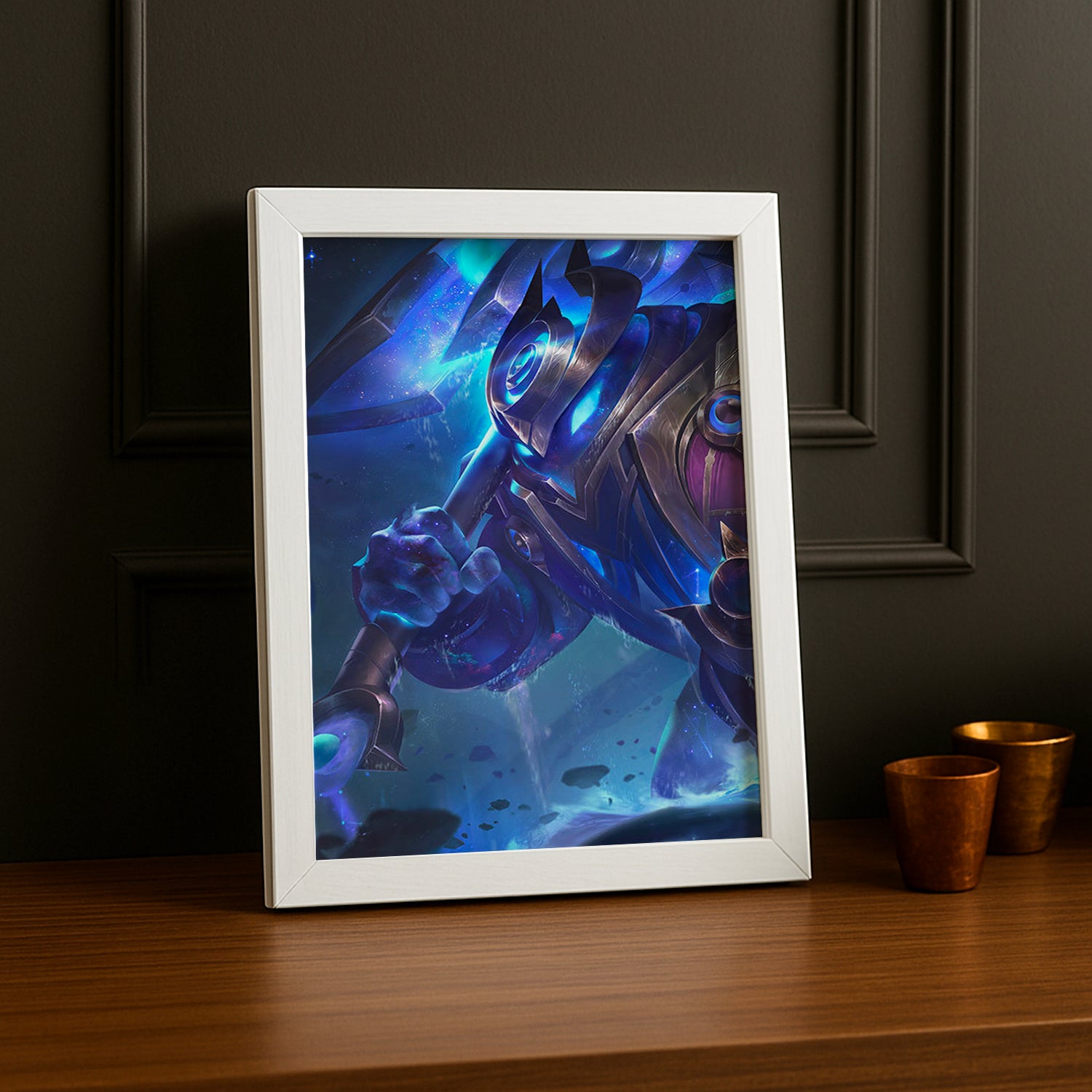 Dieser in mehreren Größen erhältliche Rahmen ist das perfekte Geschenk für begeisterte League of Legends-Spieler oder Sammler von eSport-inspirierter Kunst. Zeigen Sie stolz Ihre Liebe zu diesem legendären Champion und tauchen Sie Ihre Dekoration in das legendäre Universum von LoL ein.