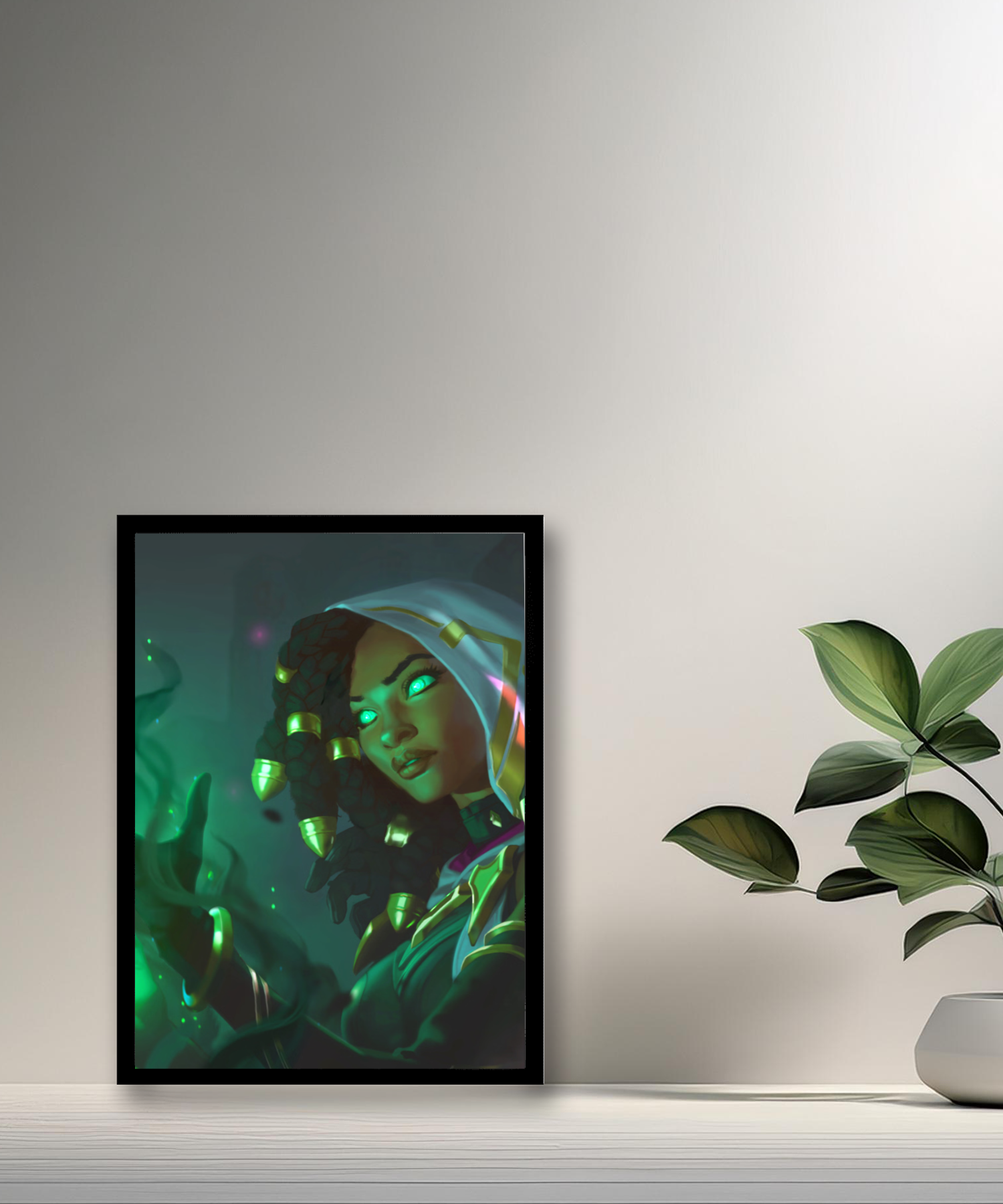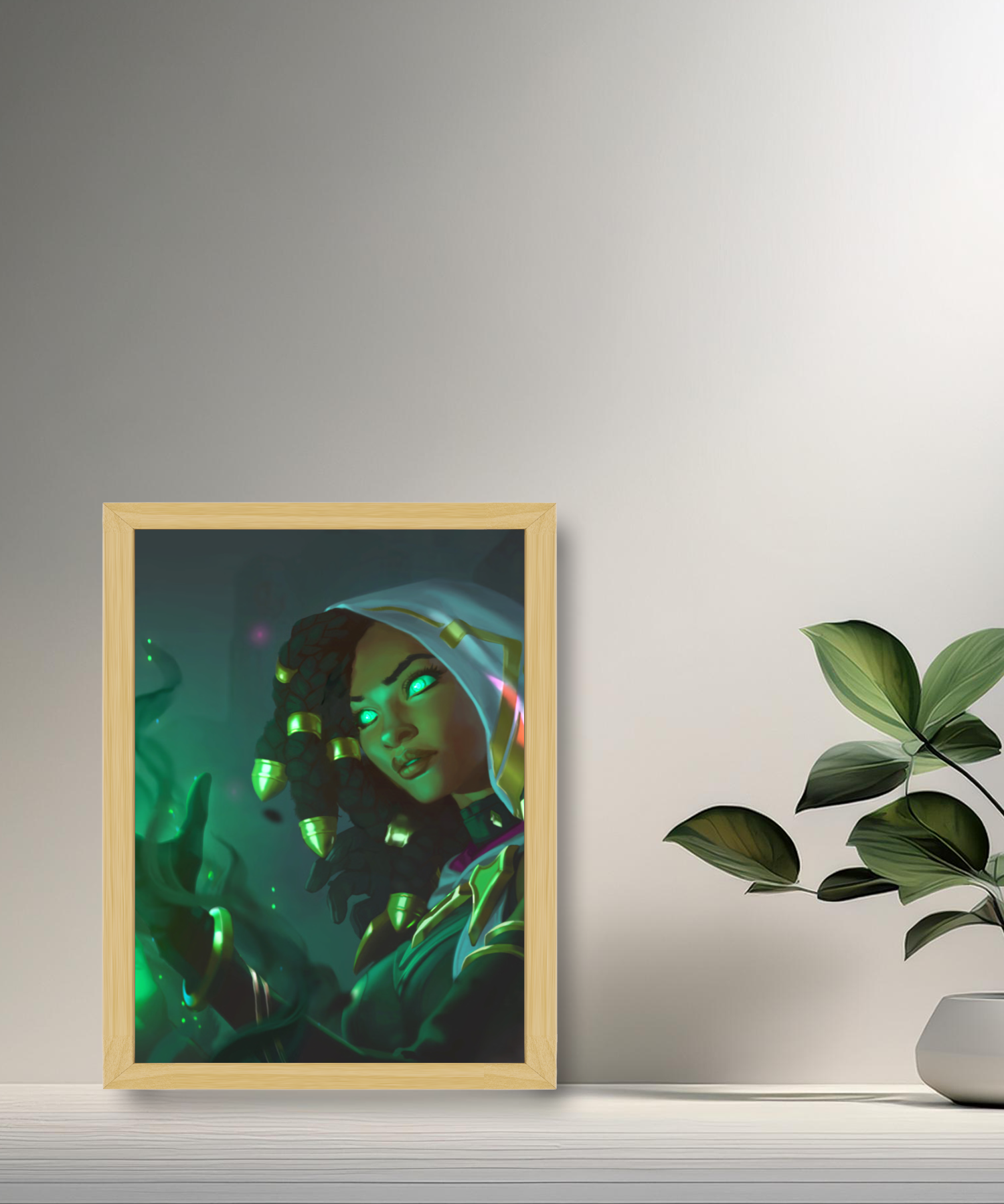 Dieser in verschiedenen Größen und Ausführungen erhältliche Rahmen ist die ideale Option, um Ihre Leidenschaft für das Universum von League of Legends zu zeigen und der Frau Tribut zu zollen, die Hoffnung und Gerechtigkeit verkörpert.