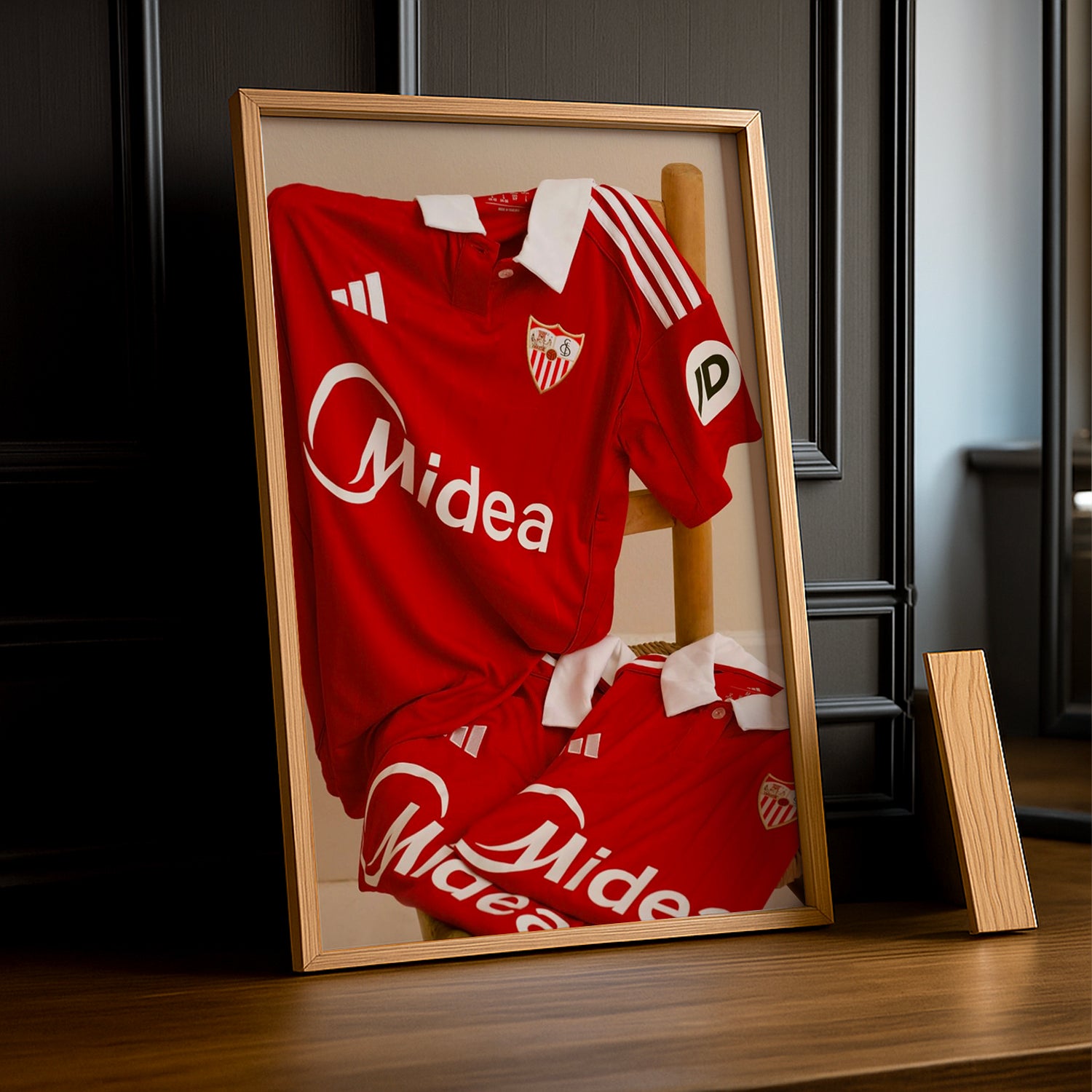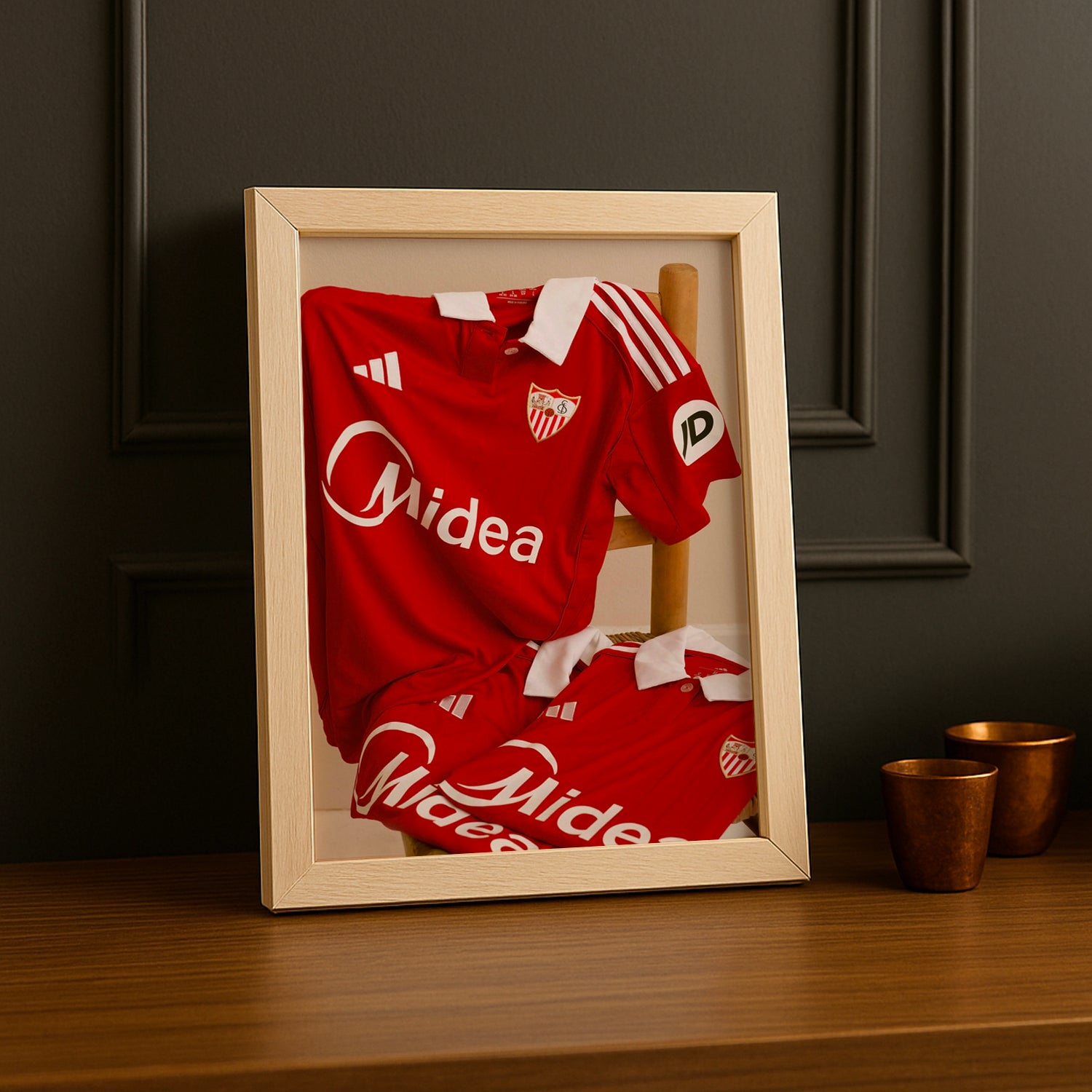 Apportez une touche de folie andalouse à votre déco avec ce cadre photo mettant en avant le maillot FC Séville 25-26. Parfait pour les fans qui veulent afficher leur passion avec un sourire, il transforme votre espace en un véritable stade de bonne humeur. Un clin d’œil joyeux à chaque but et chaque victoire !
