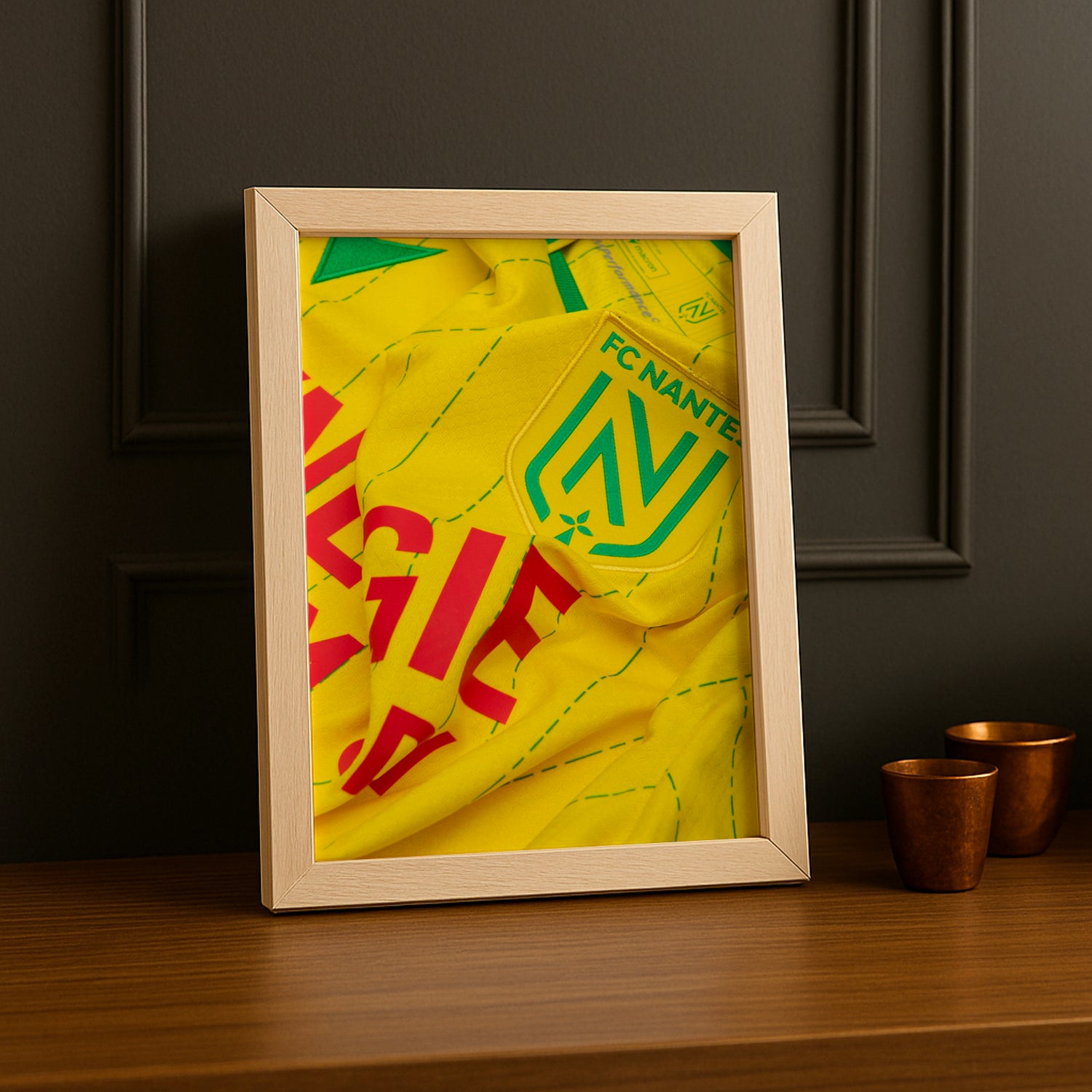 Affichez fièrement votre passion pour le FC Nantes avec ce cadre photo ludique mettant en scène le maillot officiel 2026. Parfait pour égayer votre intérieur, il capture l’esprit du club avec une touche de fun et de couleur. Un accessoire idéal pour tous les fans qui veulent garder leur équipe favorite toujours à portée de regard, avec un sourire aux lèvres !