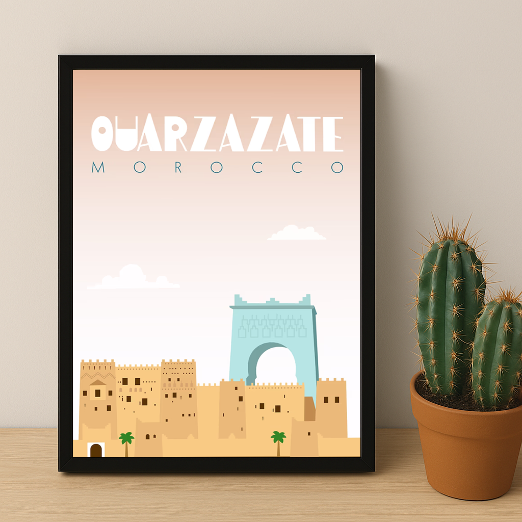 Apportez une touche d’aventure et de couleur à votre intérieur avec ce cadre photo Ouarzazate Maroc. Parfait pour capturer l’esprit chaleureux et authentique du désert, il transforme vos souvenirs en véritables œuvres d’art. Facile à accrocher, il invite à rêver d’évasions lointaines tout en restant chez soi. Un clin d’œil joyeux à la beauté marocaine qui égayera votre mur avec charme et bonne humeur.