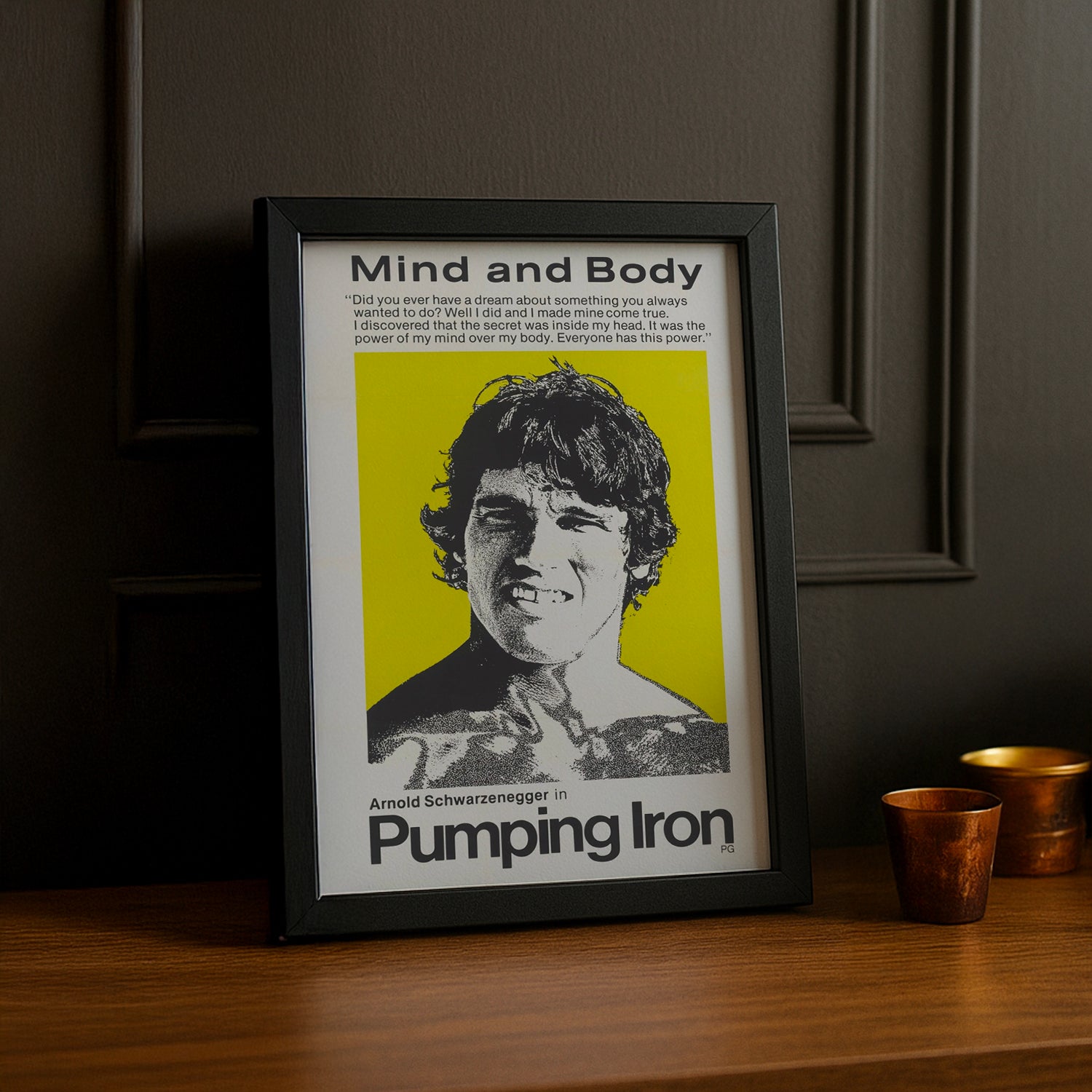 Célébrez votre passion pour la fonte avec ce cadre photo au style légendaire "Pumping Iron" ! Un incontournable pour les vrais amateurs de musculation qui vivent pour la salle de sport. Accrochez-le dans votre espace d'entraînement pour créer une ambiance de champion et rappeler à chaque séance pourquoi vous êtes là. Ce cadre capture l'essence brute et authentique du bodybuilding classique. Un accessoire de décoration qui parle à ceux qui comprennent que soulever du fer, c'est bien plus qu'un sport – c'est un mode de vie !