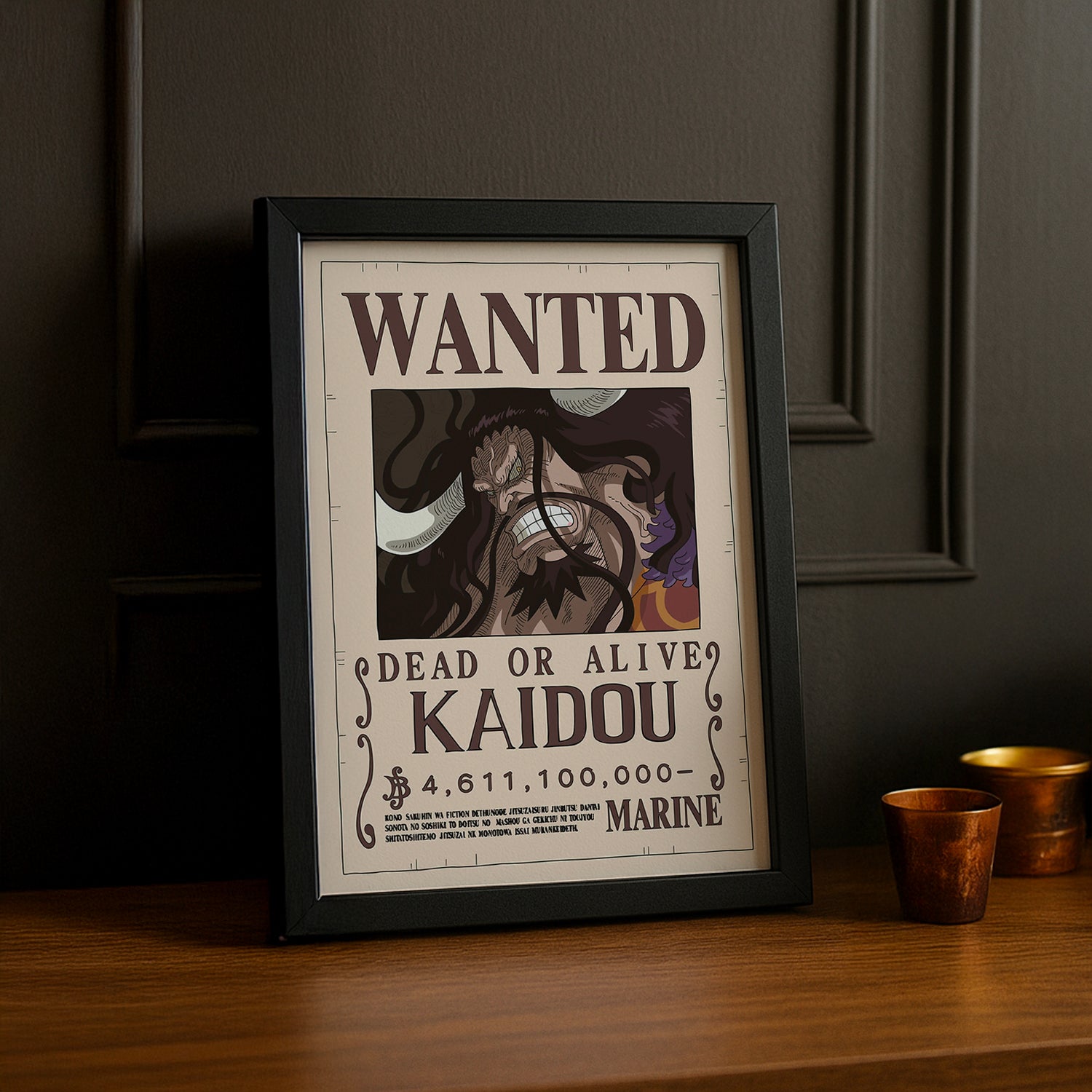 Mettez en avant l'empereur redoutable avec ce cadre photo One Piece au style "Wanted" ! Kaidou, la bête des cent bêtes et l'un des quatre empereurs les plus puissants, mérite une place de prestige. Son pouvoir dévastateur et son rôle central dans l'arc Wano en font un antagoniste légendaire. Parfait pour les fans qui respectent sa force inégalée et son présence intimidante. Accrochez-le et laissez Kaidou apporter une touche de puissance brute à votre espace !
