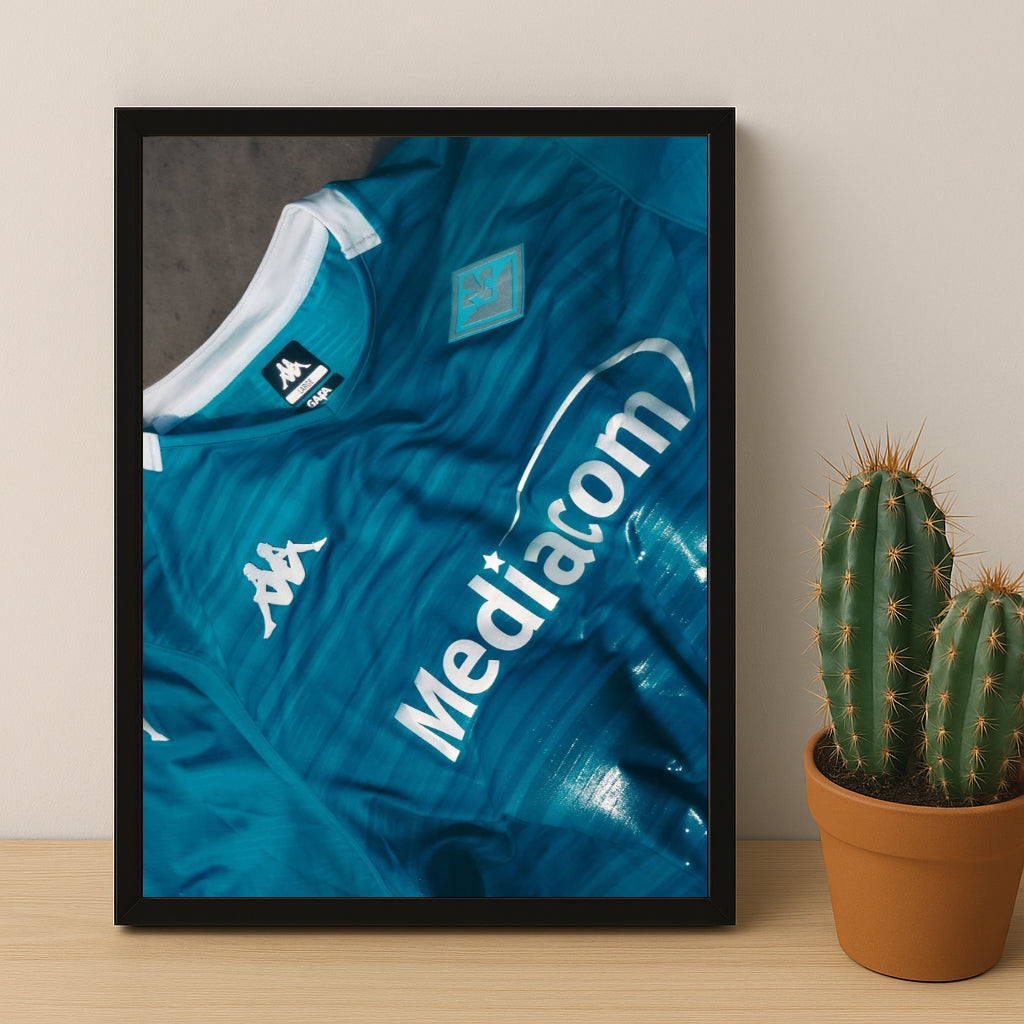 Ajoutez une touche de violet à votre déco avec ce poster du maillot Fiorentina Kit 25-26 ! Parfait pour les supporters qui veulent afficher leur passion avec style et bonne humeur, ce poster vibrant et coloré égayera votre espace tout en célébrant les Viola. Forza Fiorentina, toujours avec le sourire !