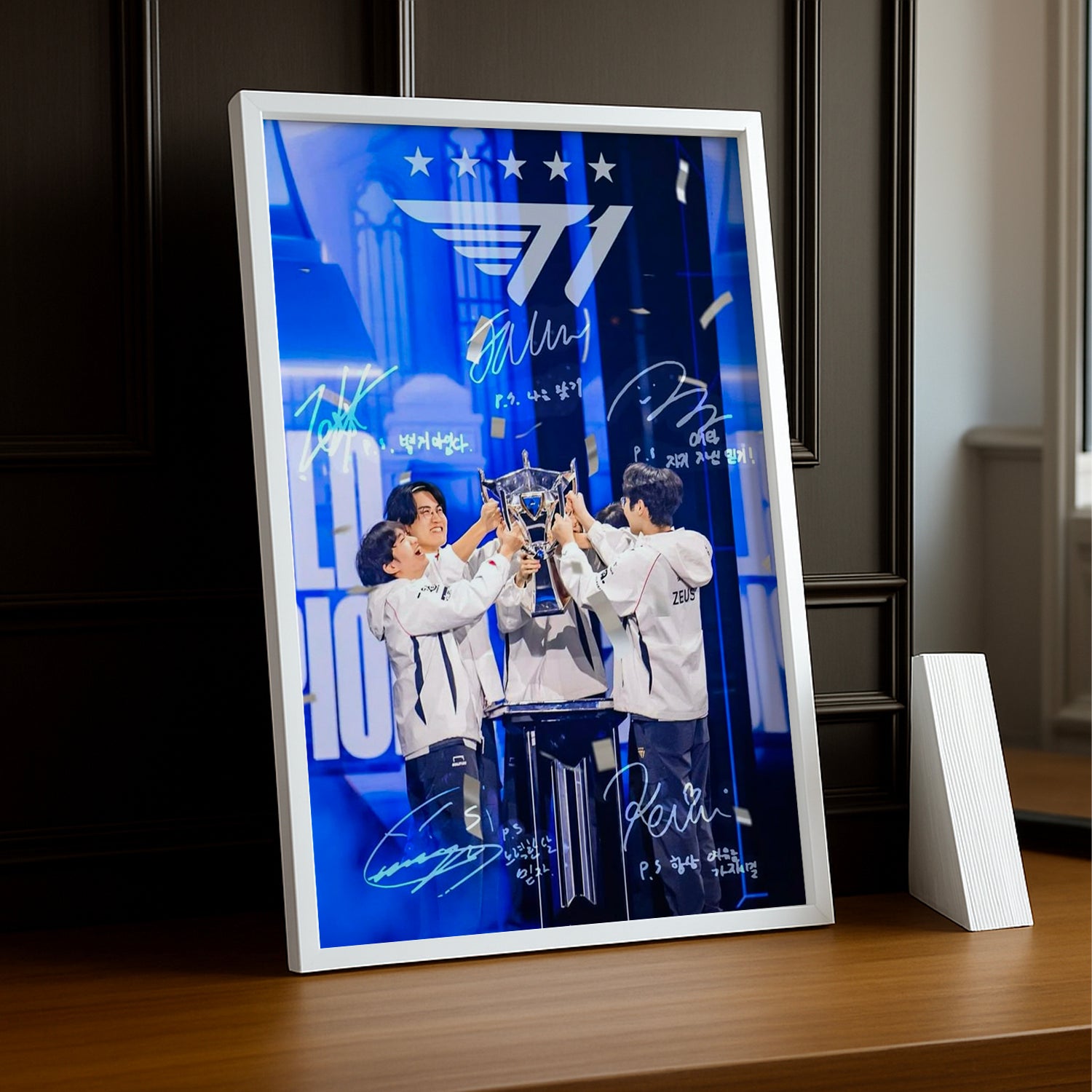 Plongez dans l'univers de la gloire avec ce cadre photo SK Telecom T1 ! Cet objet de décoration capture l'essence même de la domination et du prestige que T1 incarne dans le monde du gaming compétitif. Idéal pour les collectionneurs de souvenirs esport et les passionnés qui veulent célébrer les plus beaux exploits, ce cadre transforme n'importe quel mur en temple de la victoire. Affichage fier de votre admiration pour une équipe légendaire, il apporte une touche d'élégance gaming à votre intérieur. Un incontournable pour tous ceux qui reconnaissent la grandeur quand ils la voient !