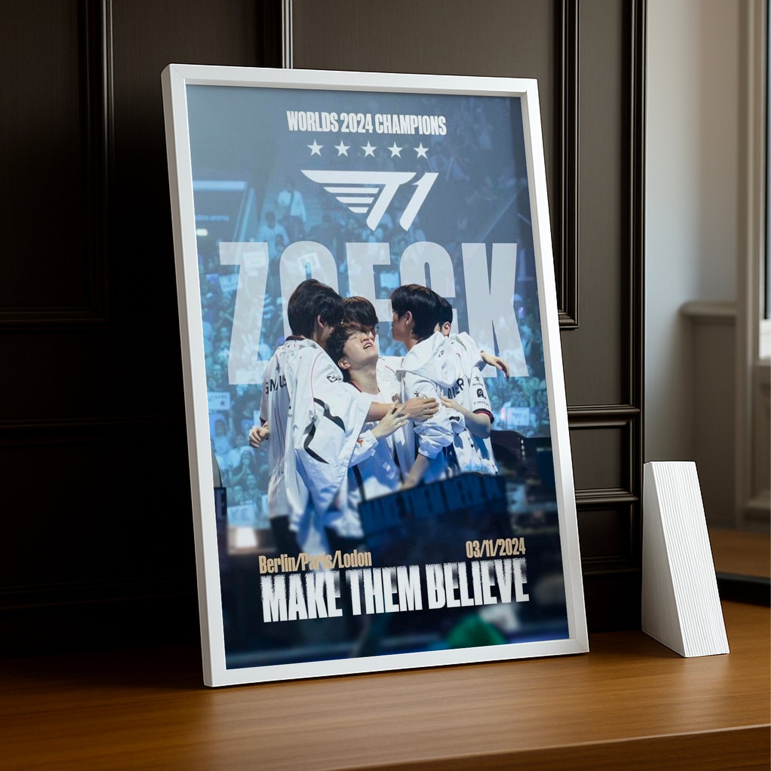 Inspirez-vous avec ce cadre photo SK Telecom T1 "Make Them Believe" ! Arborez la devise motivante de l'une des plus grandes organisations d'esport au monde et laissez cette philosophie de champion envahir votre espace. Que ce soit dans votre chambre, votre bureau ou votre setup gaming, ce cadre insuffle une dose de détermination et de confiance débordante. Parfait pour les joueurs qui rêvent grand et les fans qui croient en l'impossible, il transforme vos murs en galerie de victoires mentales. Un rappel quotidien que tout est possible quand on y croit vraiment !