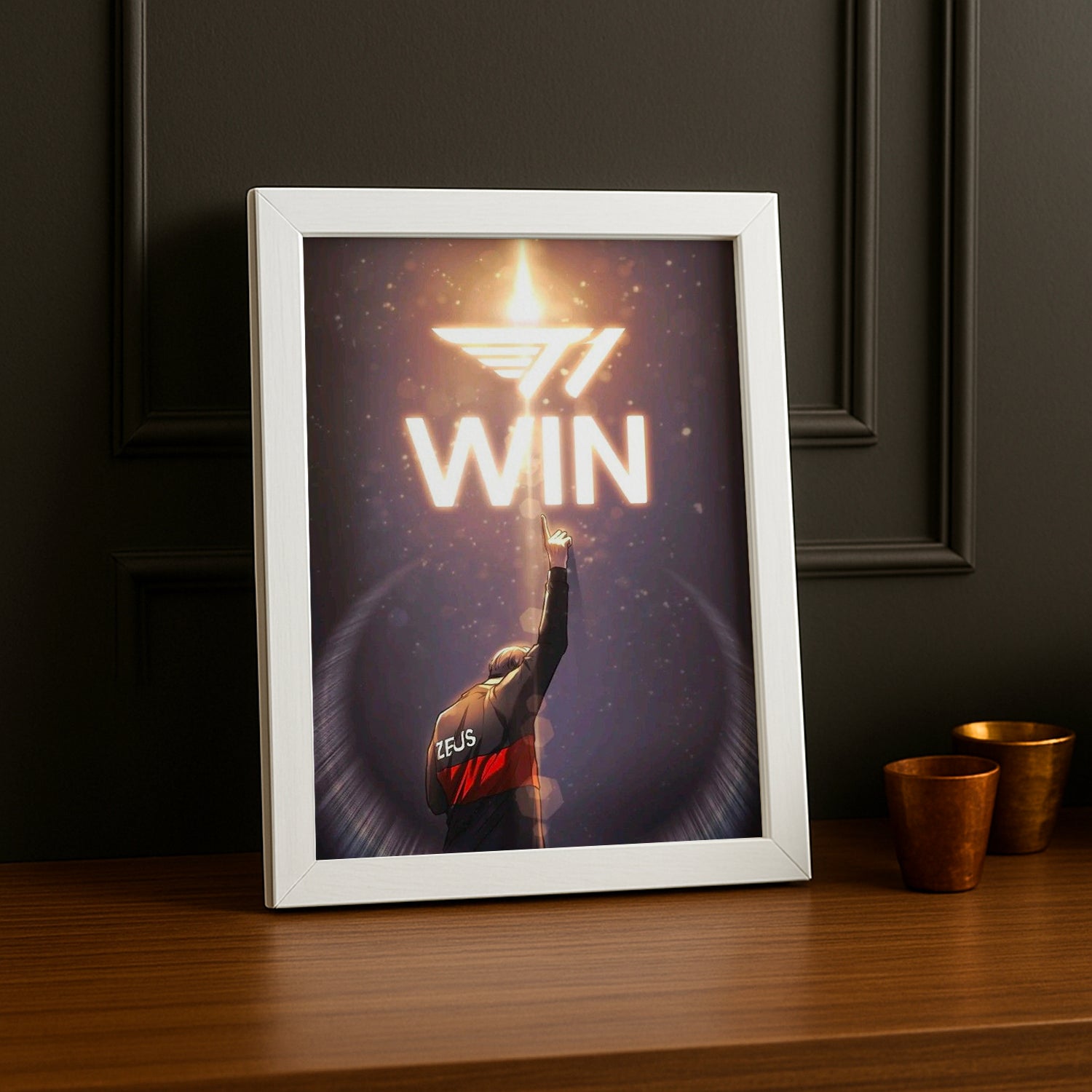Célébrez la victoire avec ce cadre photo SK Telecom T1 - Win ! Trois lettres qui résument parfaitement l'ADN de T1 : la quête perpétuelle de l'excellence et la saveur incomparable du succès. Ce cadre incarne l'esprit gagnant qui définit une organisation légendaire et inspire tous ceux qui le contemplent. Parfait pour les compétiteurs dans l'âme et les fans qui vivent chaque victoire comme une épopée personnelle, ce cadre transforme votre décoration en manifeste de détermination. Accrochez-le fièrement et laissez-le vous rappeler que chez T1, on ne vise que le sommet !