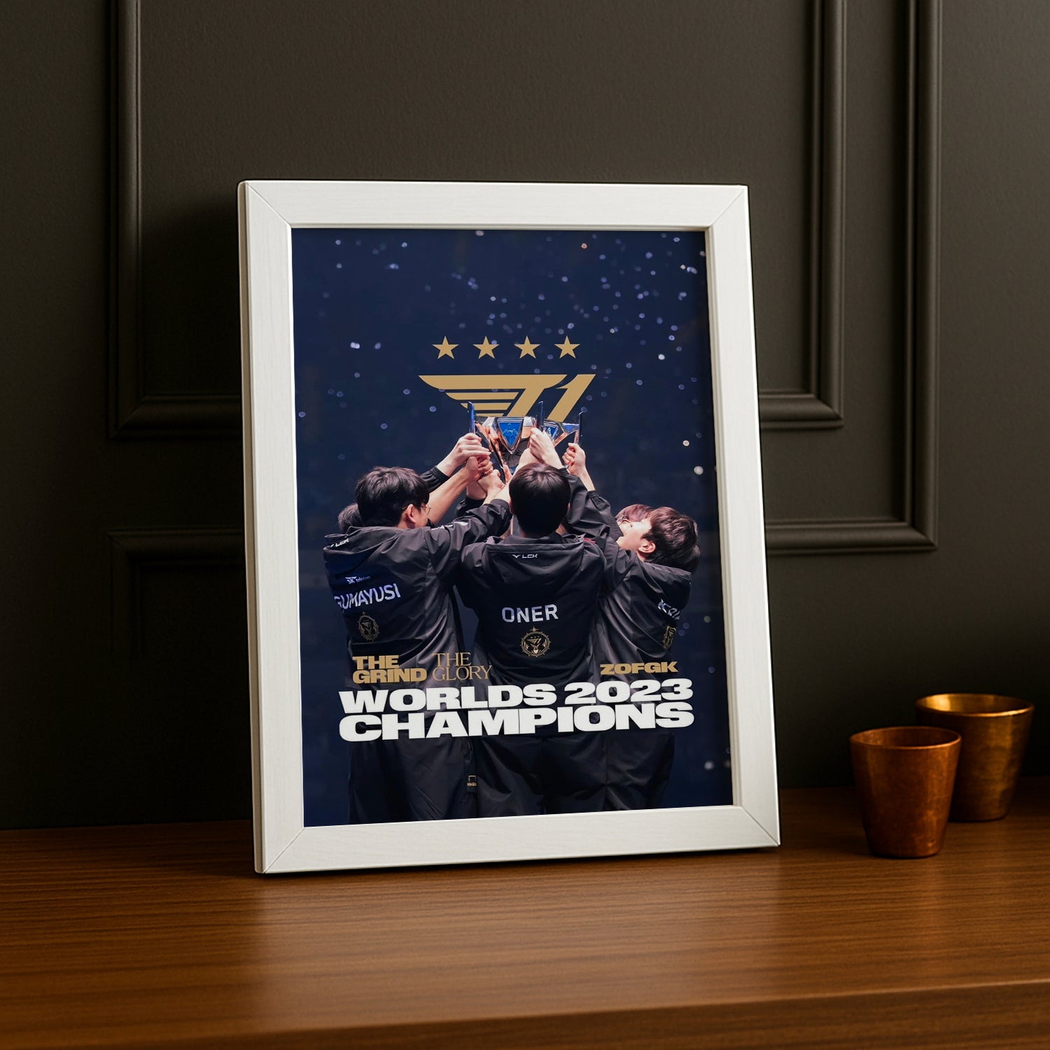 Gravez l'histoire avec ce cadre photo SK Telecom T1 - Worlds Champion 2023 ! Immortalisez le moment où T1 a réclamé sa couronne suprême et ajouté un nouveau chapitre à sa légende inépuisable. Ce cadre célèbre la victoire ultime, le triomphe sur la scène mondiale où les meilleurs affrontaient les meilleurs. Parfait pour les fans qui ont vibré à chaque match et ceux qui reconnaissent l'excellence quand elle brille sous les projecteurs, ce cadre transforme votre espace en musée de la gloire. Accrochez-le comme un trophée vivant et revivez la magie d'une année où T1 a rappelé au monde entier qui règne !