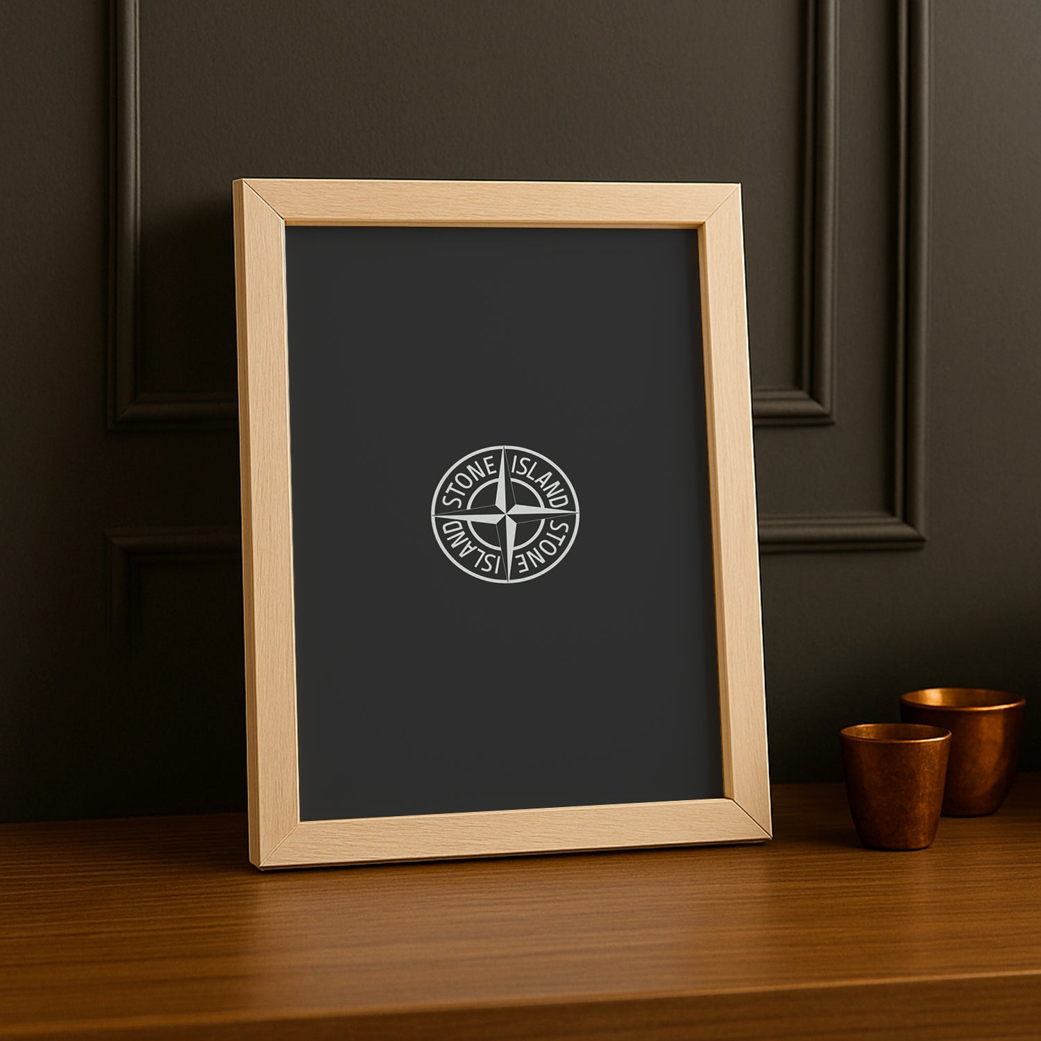 Le cadre photo Stone Island badge ajoute un style unique à n'importe quelle pièce. Affichez vos photos préférées avec une touche d'humour grâce à ce cadre original. L'ajout parfait à votre décoration intérieure pour les amateurs de la marque Stone Island.