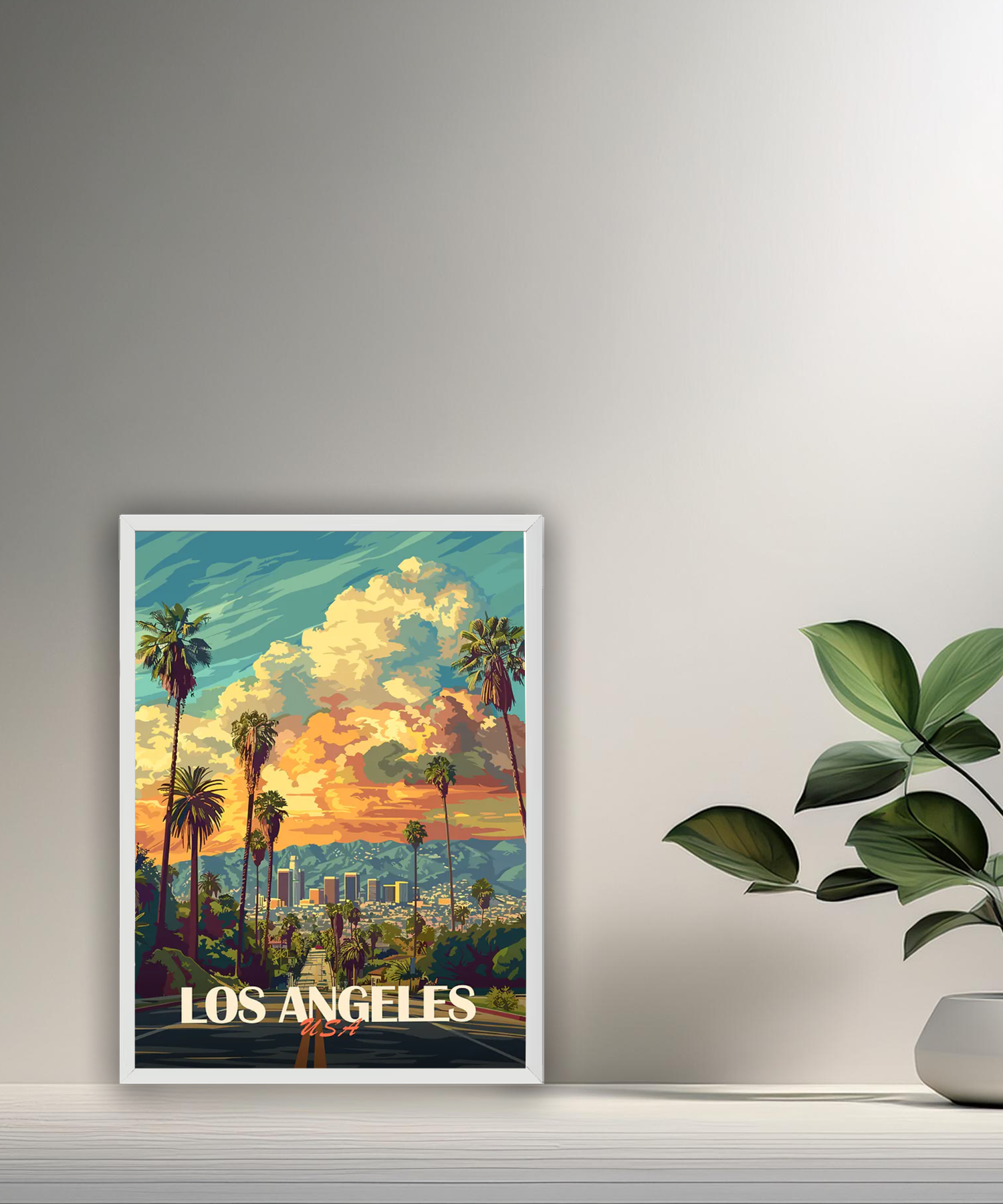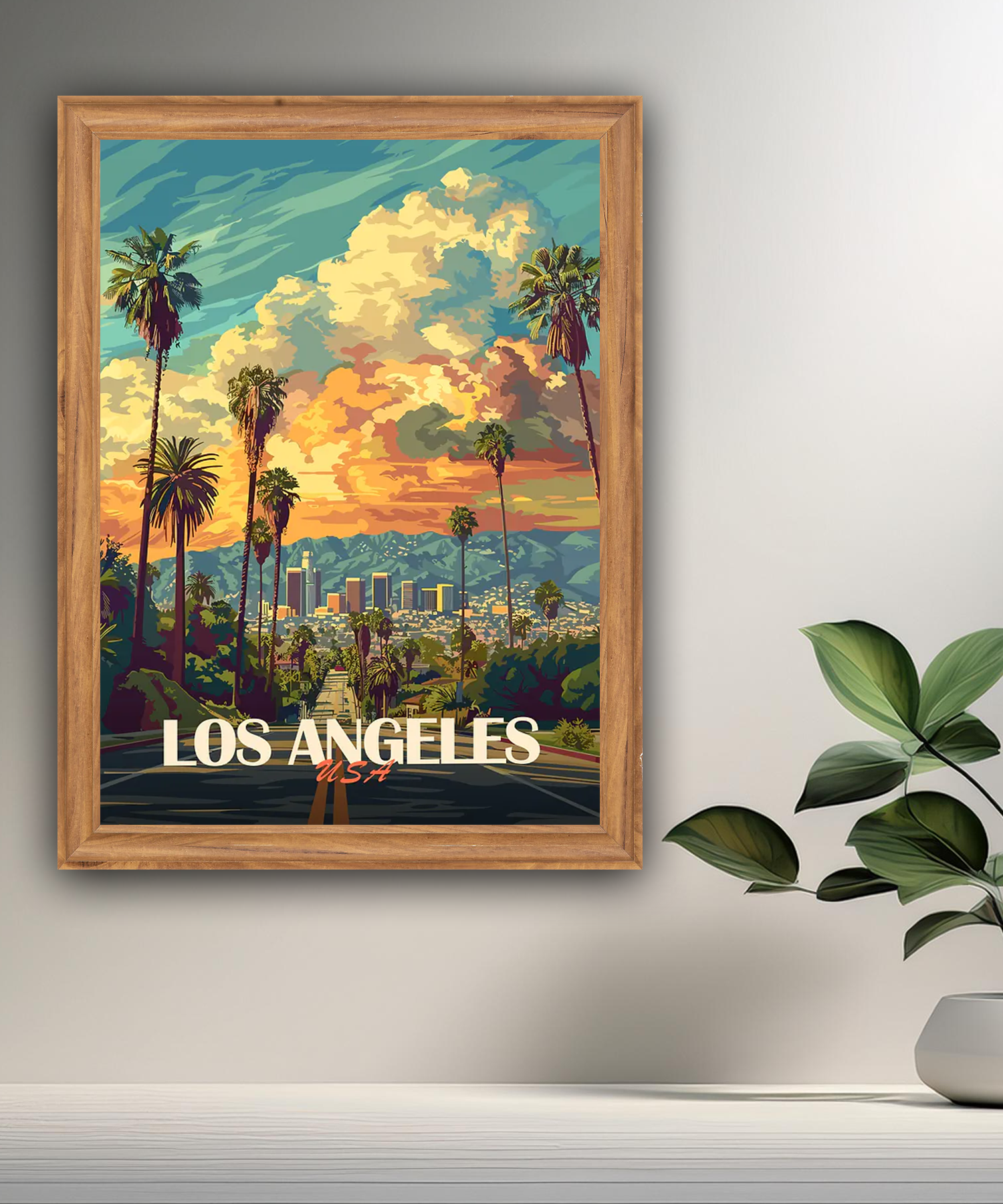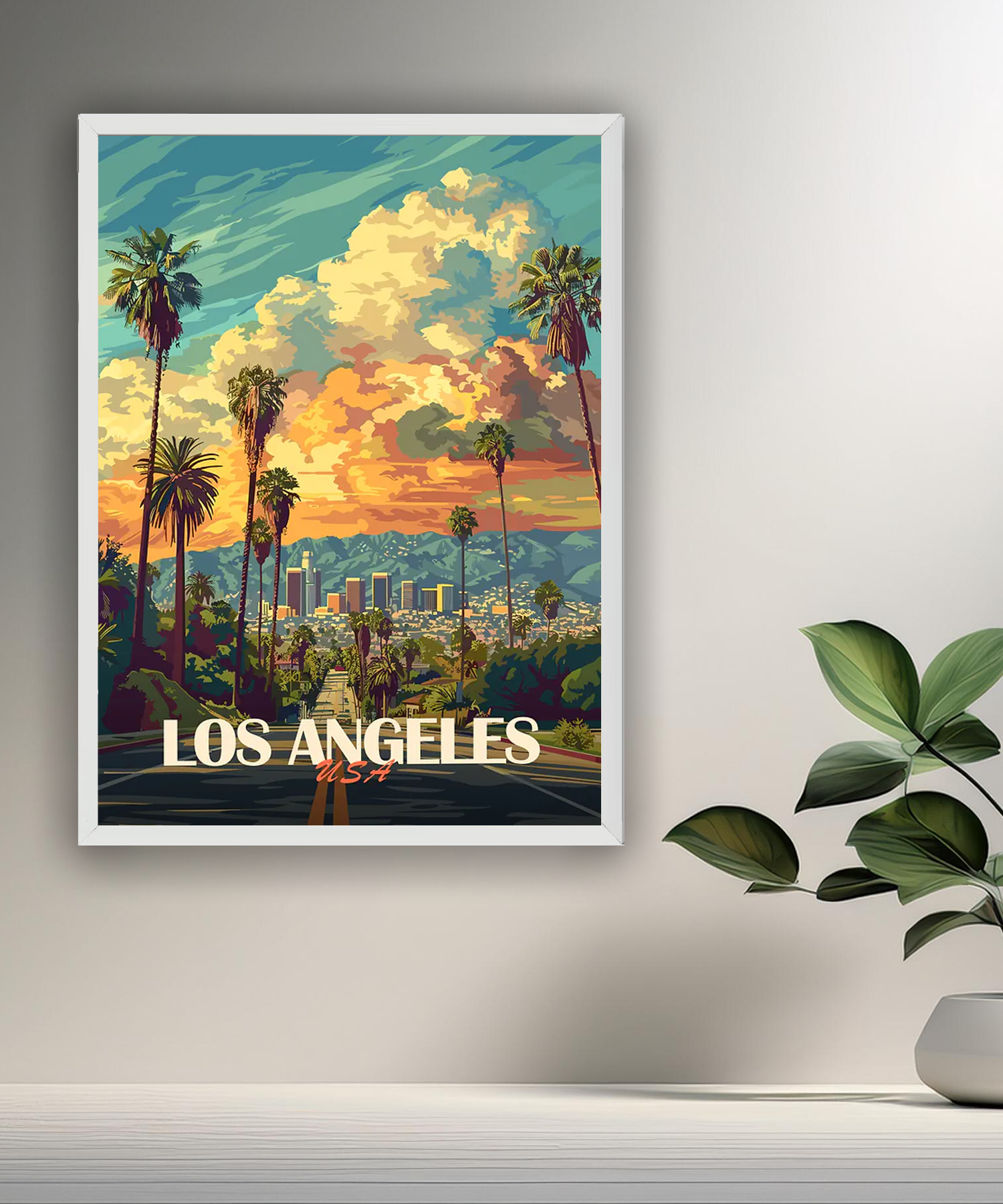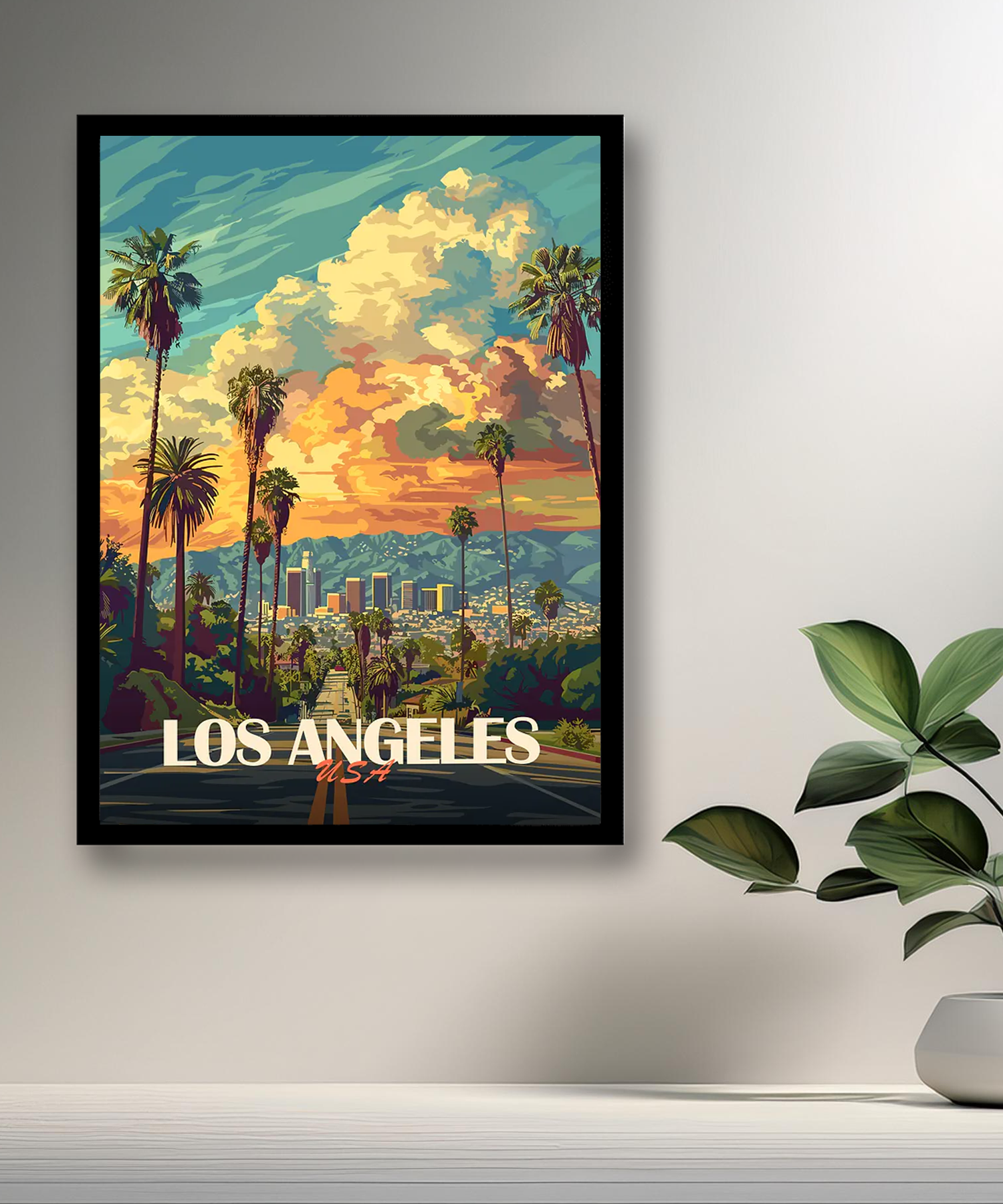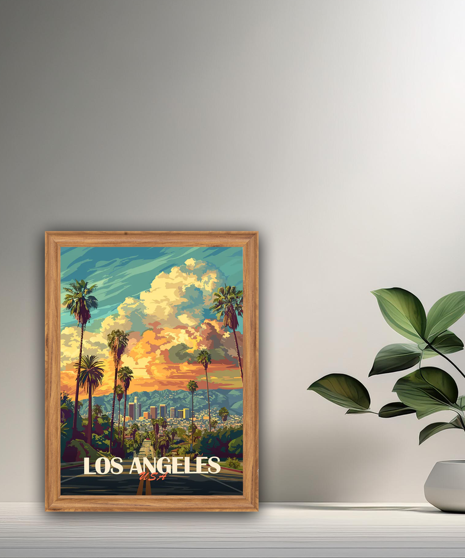 Que vous soyez passionné par le cinéma, le mode de vie californien, ou que vous rêviez de la ville des stars, ce cadre est l’ajout parfait pour votre collection ou un cadeau idéal pour tout fan de LA.