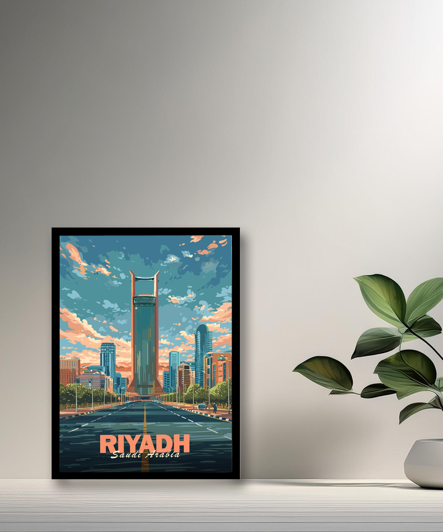 Que vous soyez passionné par l’architecture moderne, la culture saoudienne, ou simplement séduit par l’atmosphère vibrante de Riyadh, ce cadre est un ajout parfait à votre décoration ou un cadeau idéal.