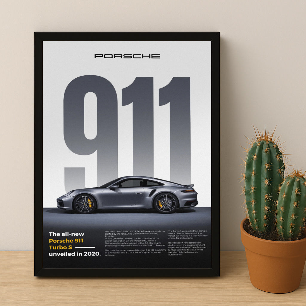 Ajoutez de la vitesse et du style à vos murs avec ce poster de la Porsche 911 Turbo S, une icône de puissance et d’élégance. Parfait pour les passionnés qui aiment allier performance et fun, ce poster dynamise votre déco avec une touche d’audace et de rythme. Laissez la 911 Turbo S faire vibrer votre intérieur avec énergie et style !