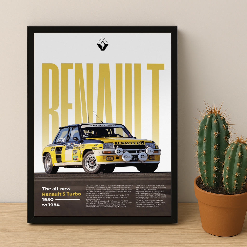 Boostez votre déco avec ce poster de la Renault 5 Turbo, une petite bombe au charme rétro et à la puissance surprenante. Parfait pour les amateurs de voitures cultes et de fun, ce poster apporte une touche d’énergie vintage à vos murs. Laissez la Renault 5 Turbo faire pétiller votre intérieur avec style et audace !