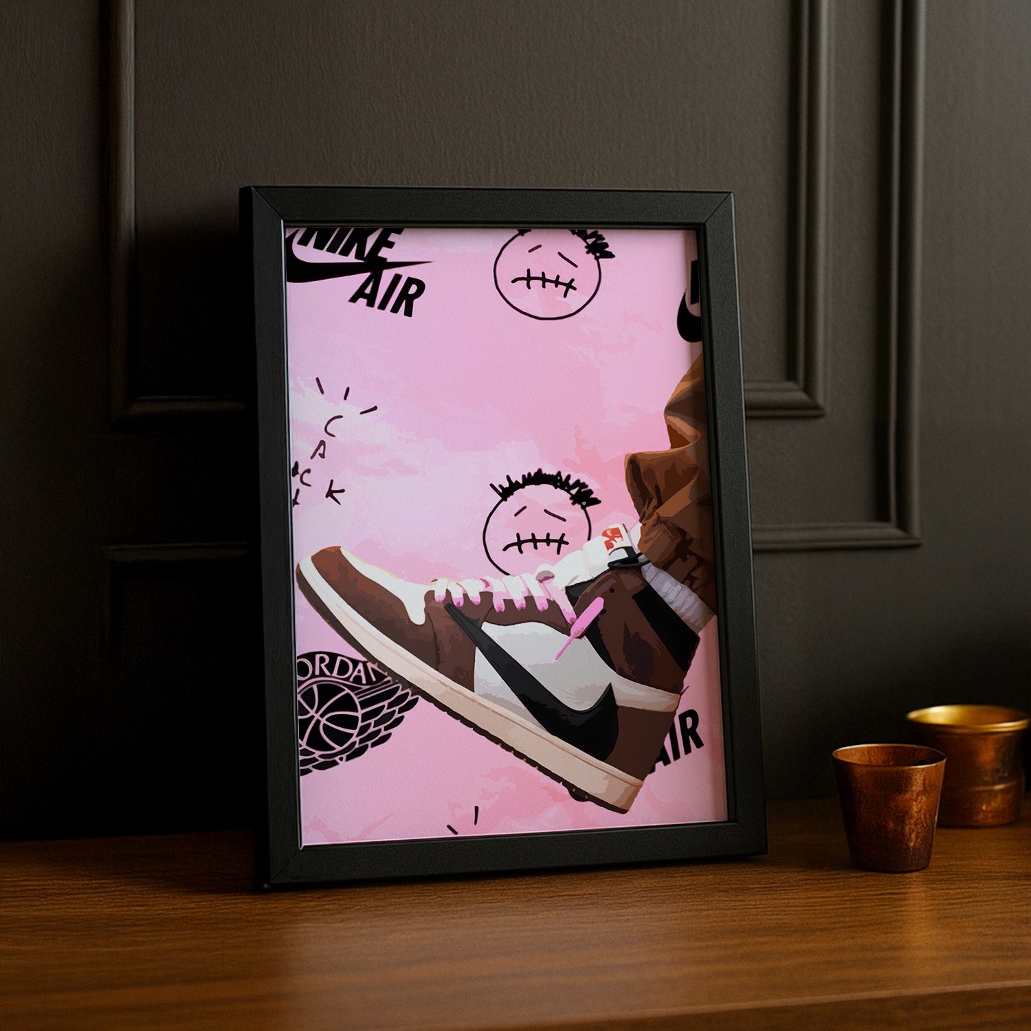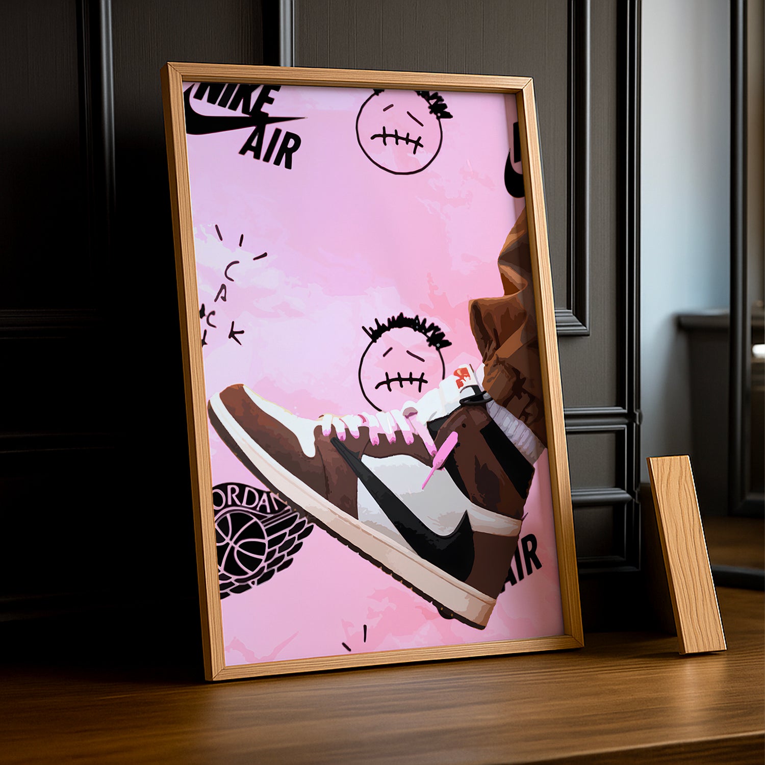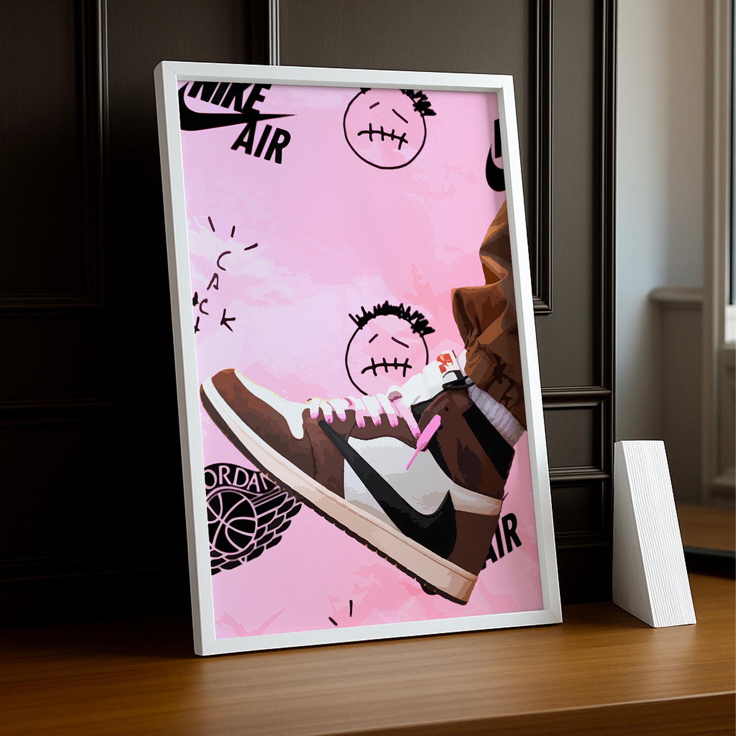 Affichez vos souvenirs sportifs avec style grâce à ce cadre photo Air Jordan 1 x Travis Scott. Montrez votre passion pour la mode et le basketball avec cet accessoire unique qui met en valeur votre photo préférée. Parfait pour les fans de sneakers à la recherche d'un objet de décoration original et amusant.