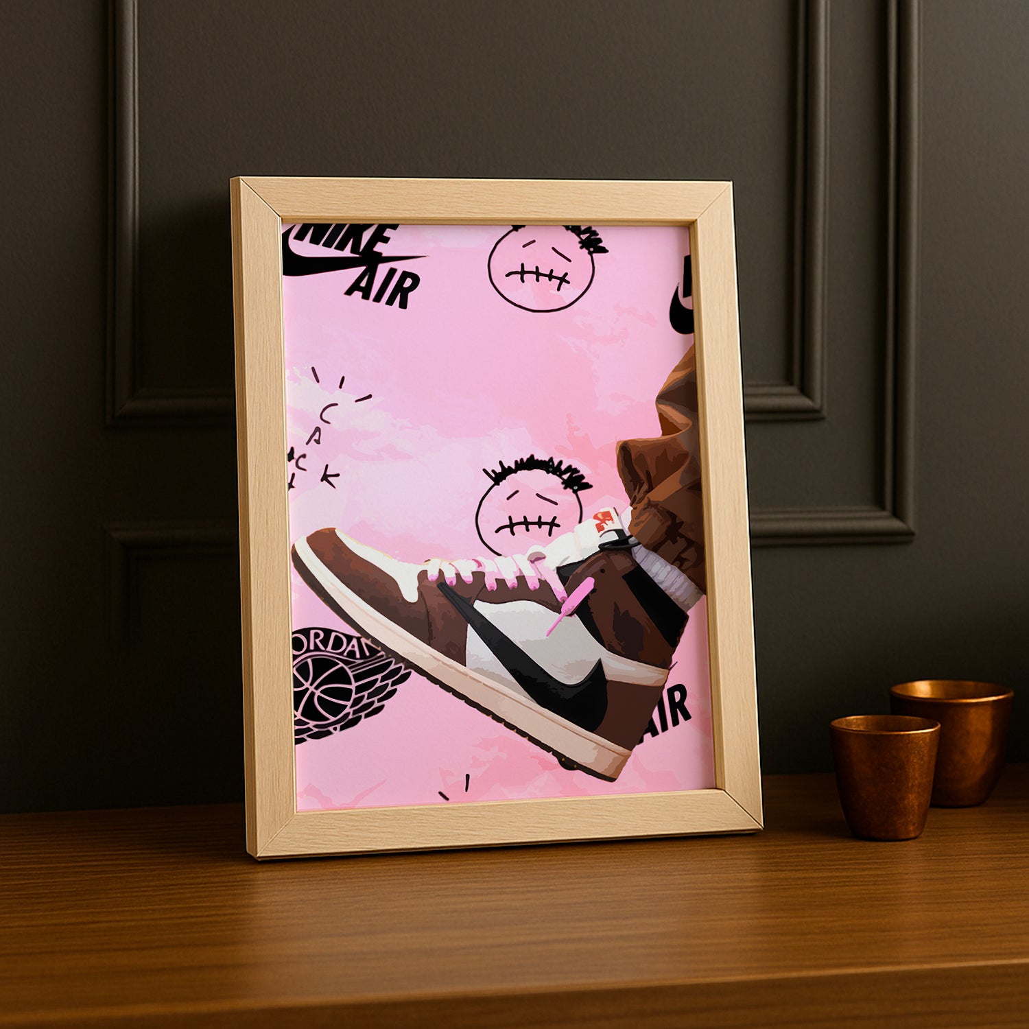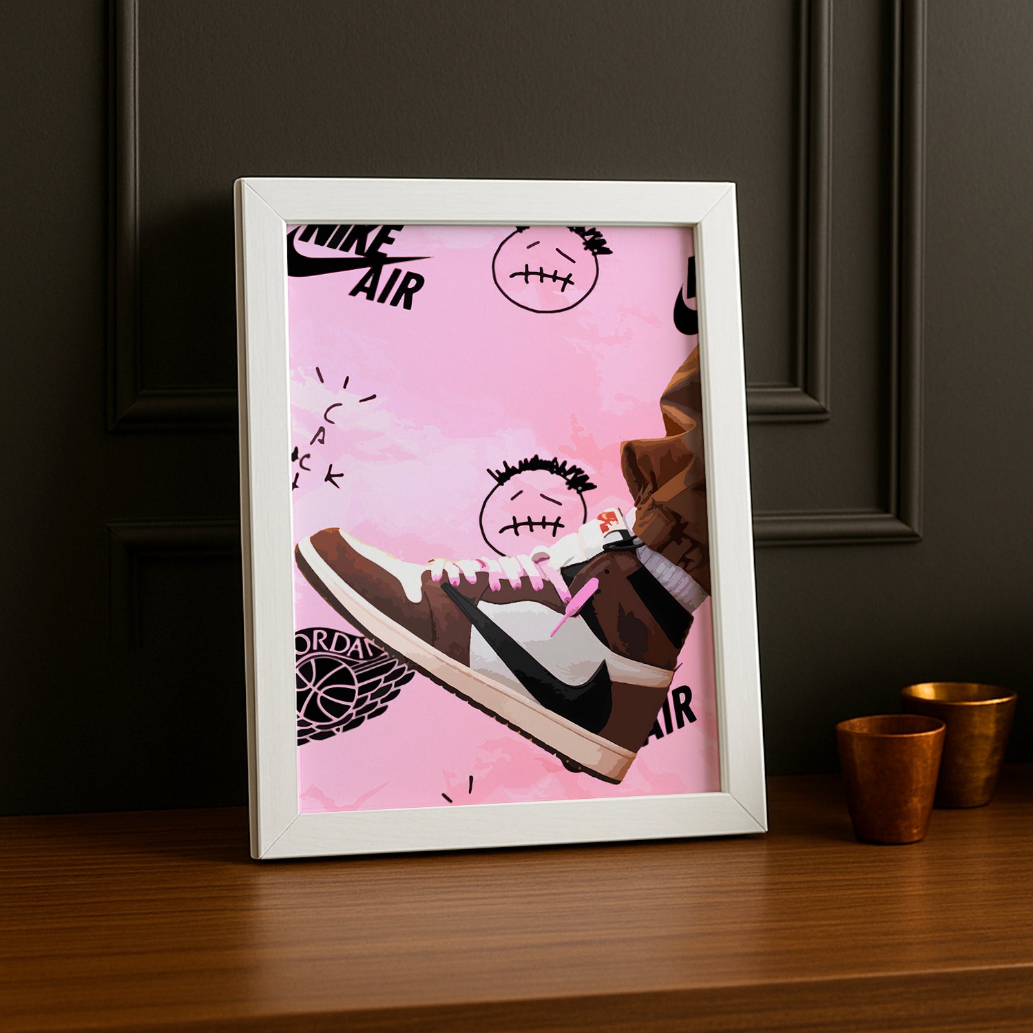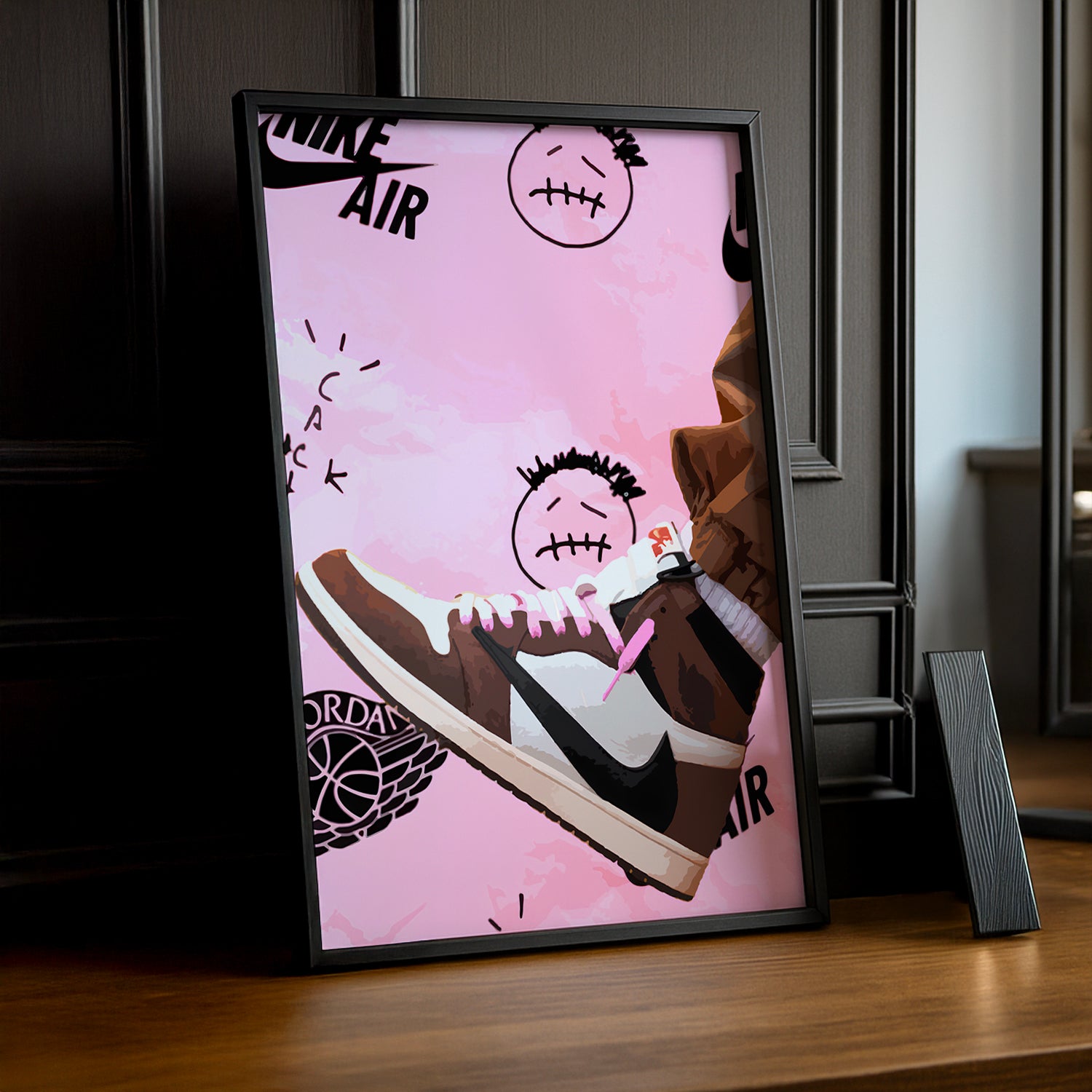 Affichez vos souvenirs sportifs avec style grâce à ce cadre photo Air Jordan 1 x Travis Scott. Montrez votre passion pour la mode et le basketball avec cet accessoire unique qui met en valeur votre photo préférée. Parfait pour les fans de sneakers à la recherche d'un objet de décoration original et amusant.