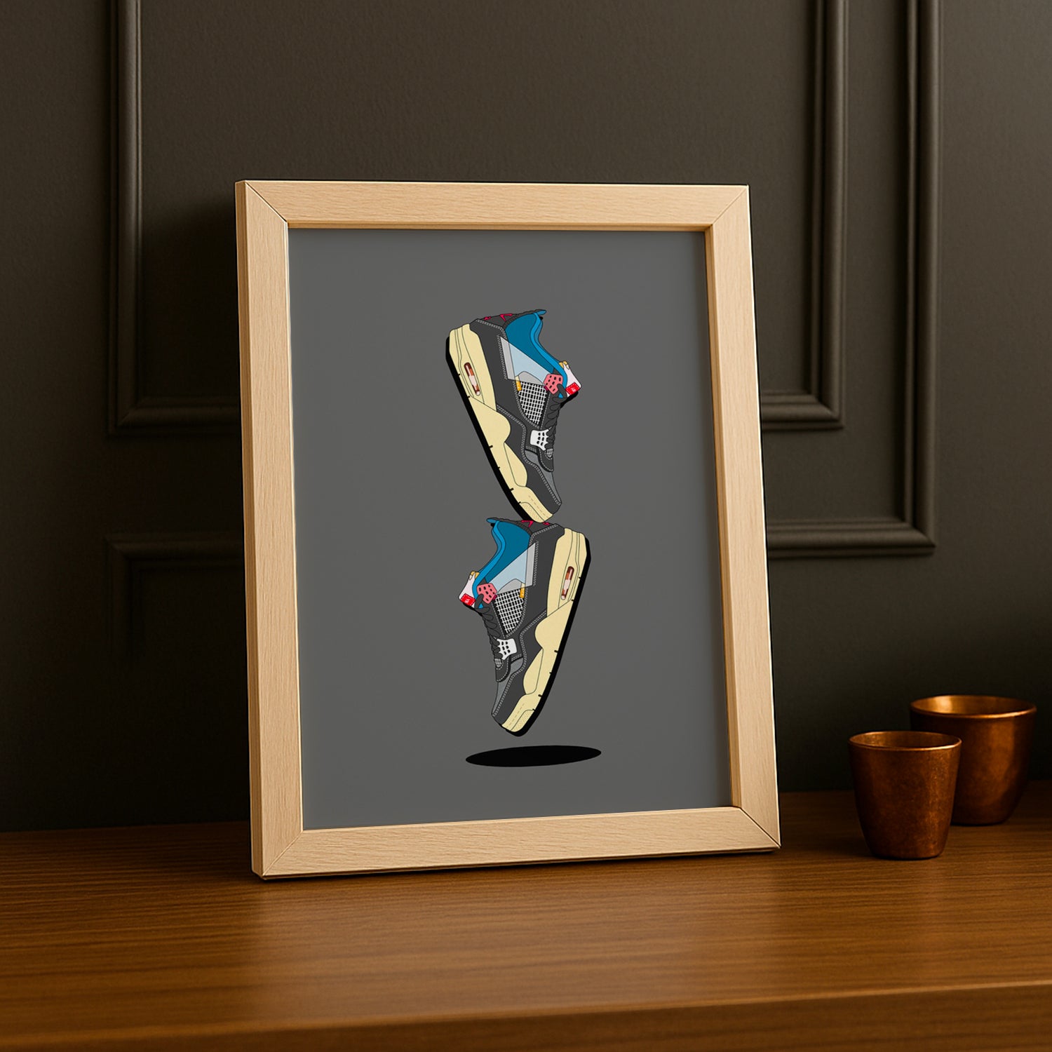Mettez vos souvenirs en valeur avec le cadre photo Air Jordan 4 Illustration! Ce cadre unique en son genre est inspiré de la chaussure de basket emblématique et apportera une touche de style et de nostalgie à votre décoration intérieure. (Sneakerheads, ceci est pour vous)!