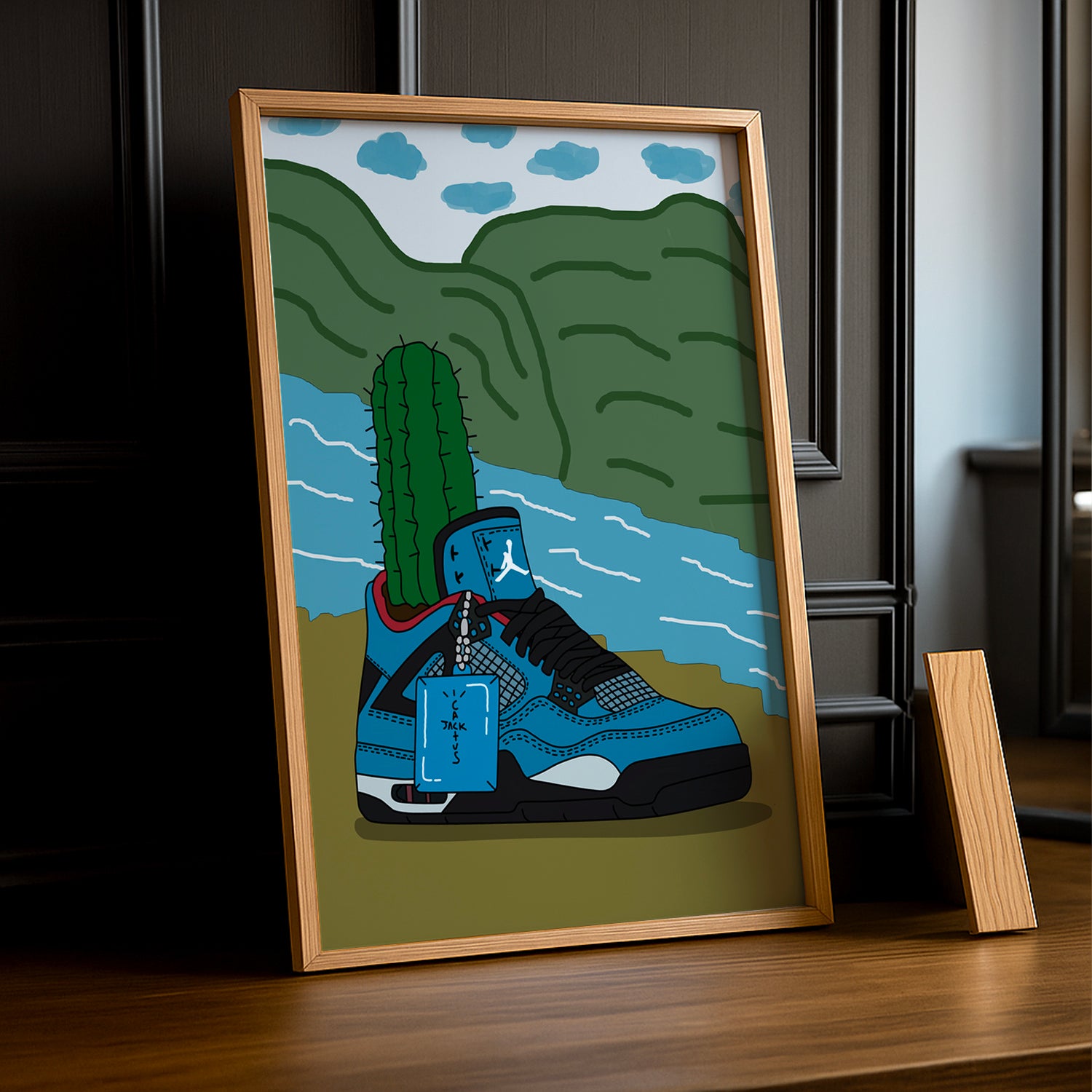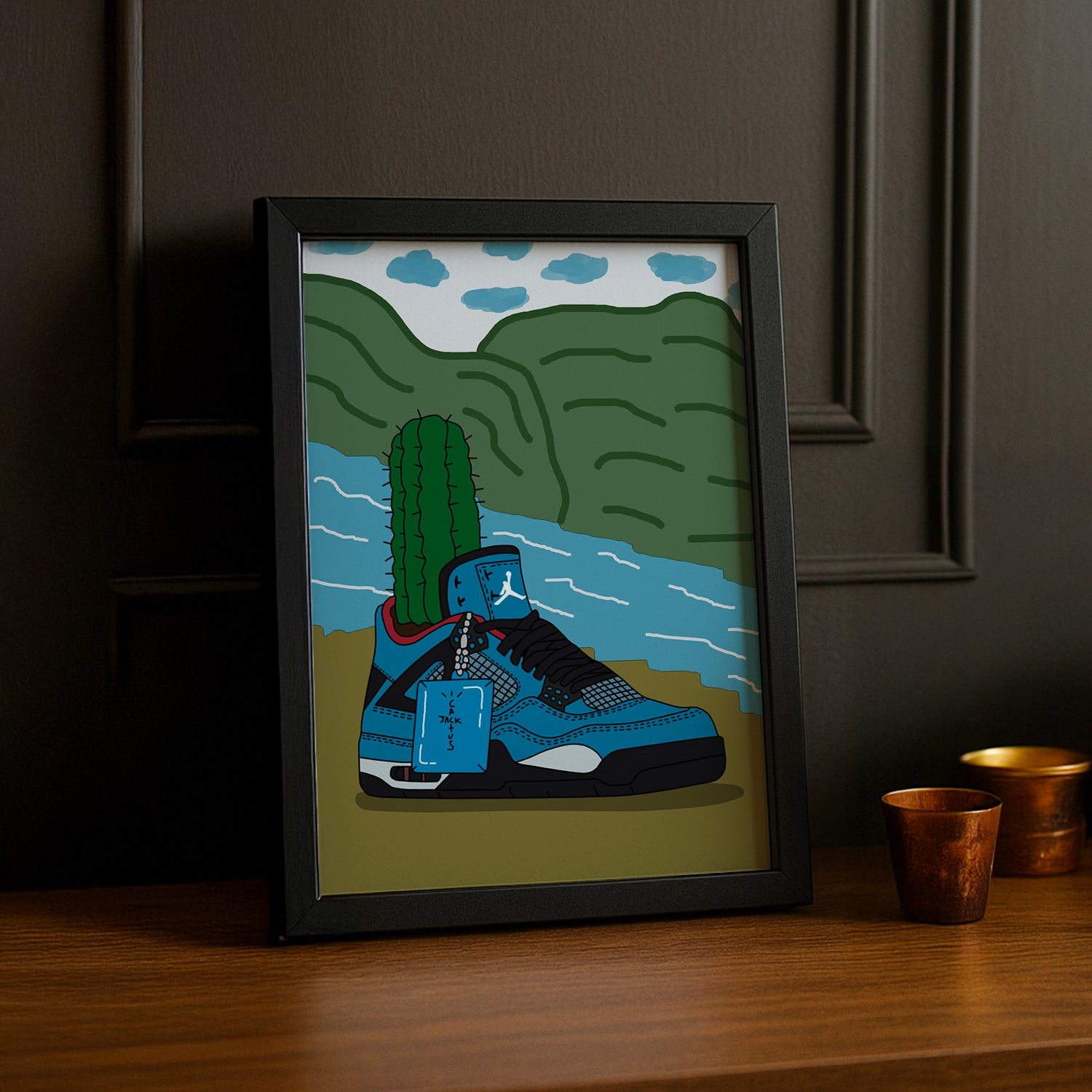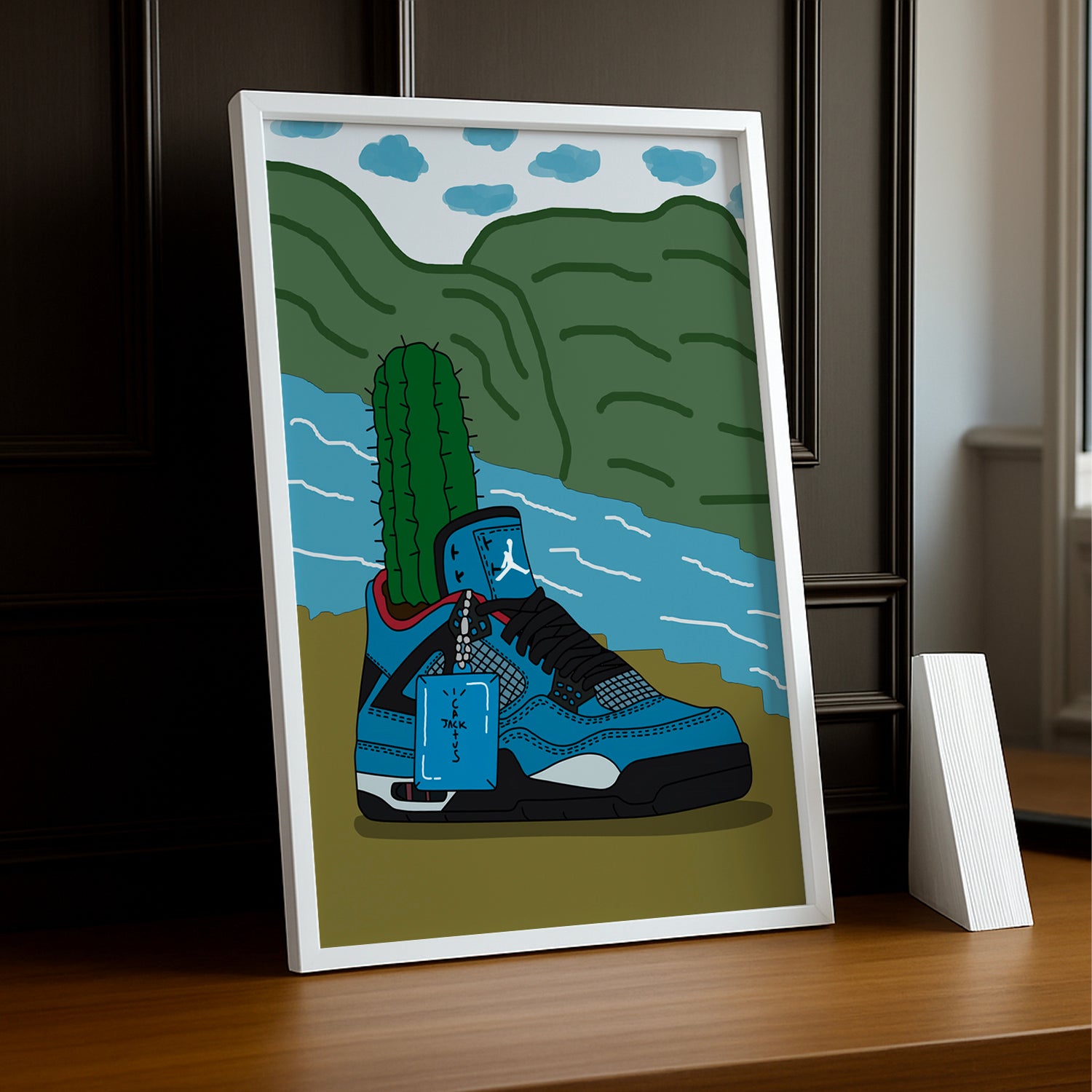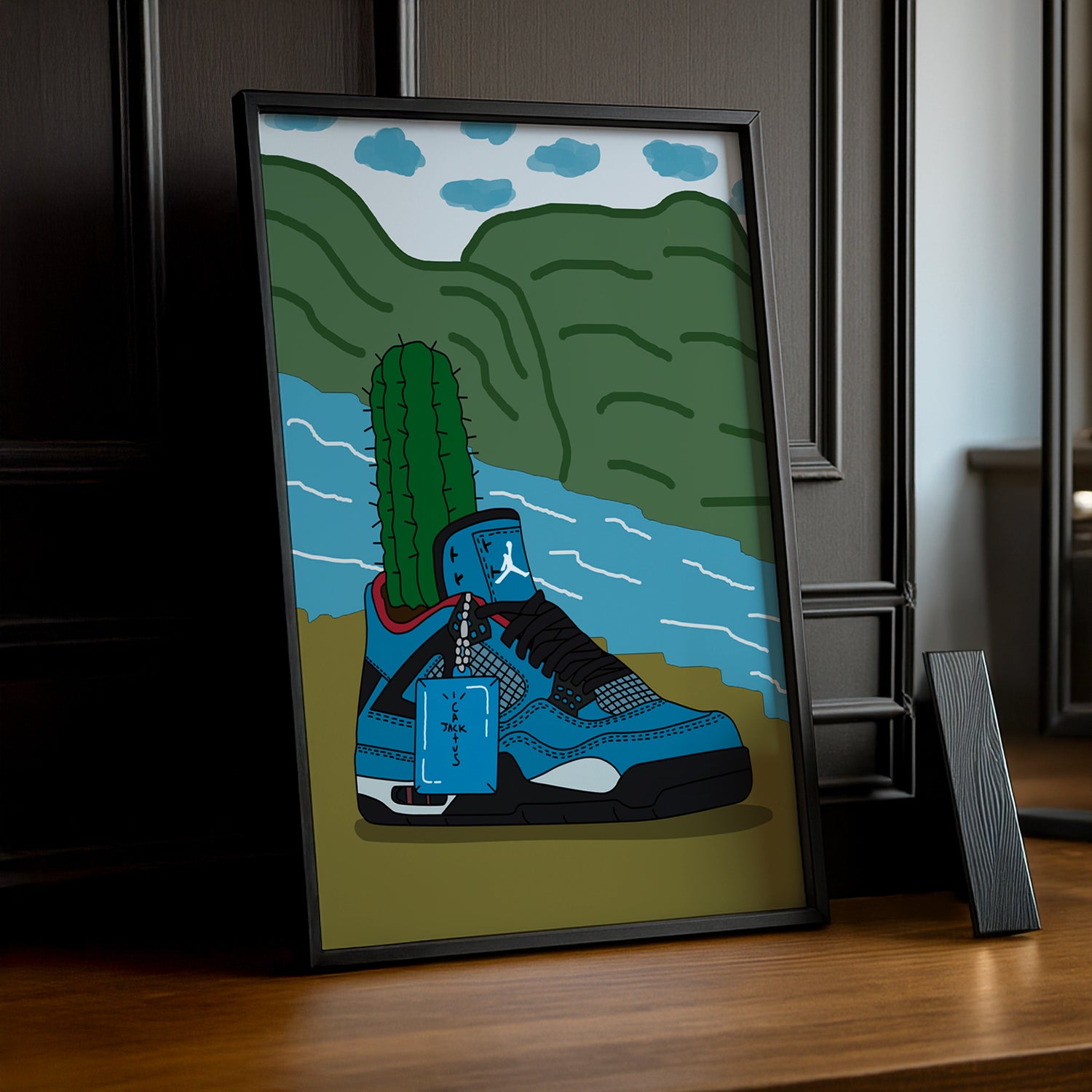 Montrez vos sneakers préférées avec style grâce à ce cadre photo unique Air Jordan Cactus Jack Bleu. Parfait pour les collectionneurs et les fans de sneakers, ce cadre ajoute une touche de fraîcheur à votre décoration intérieure. Faites ressortir votre passion pour la mode et les baskets avec ce cadre original.
