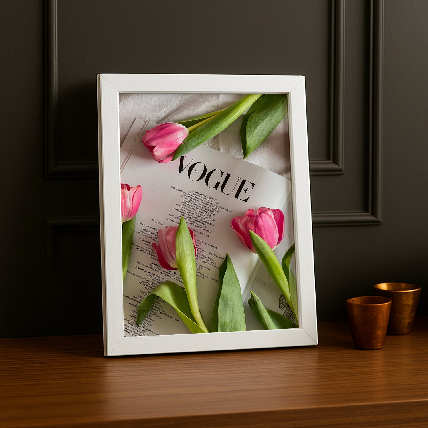 Fleurissez votre intérieur avec ce poster photo Vogue célébrant la beauté délicate des fleurs ! Un design romantique et coloré qui capture l'essence de la nature en toute sa splendeur. Idéal pour créer une ambiance douce et apaisante, ce poster ajoute une touche de poésie et de fraîcheur à votre décoration. Un accessoire déco qui égaye et inspire la sérénité !