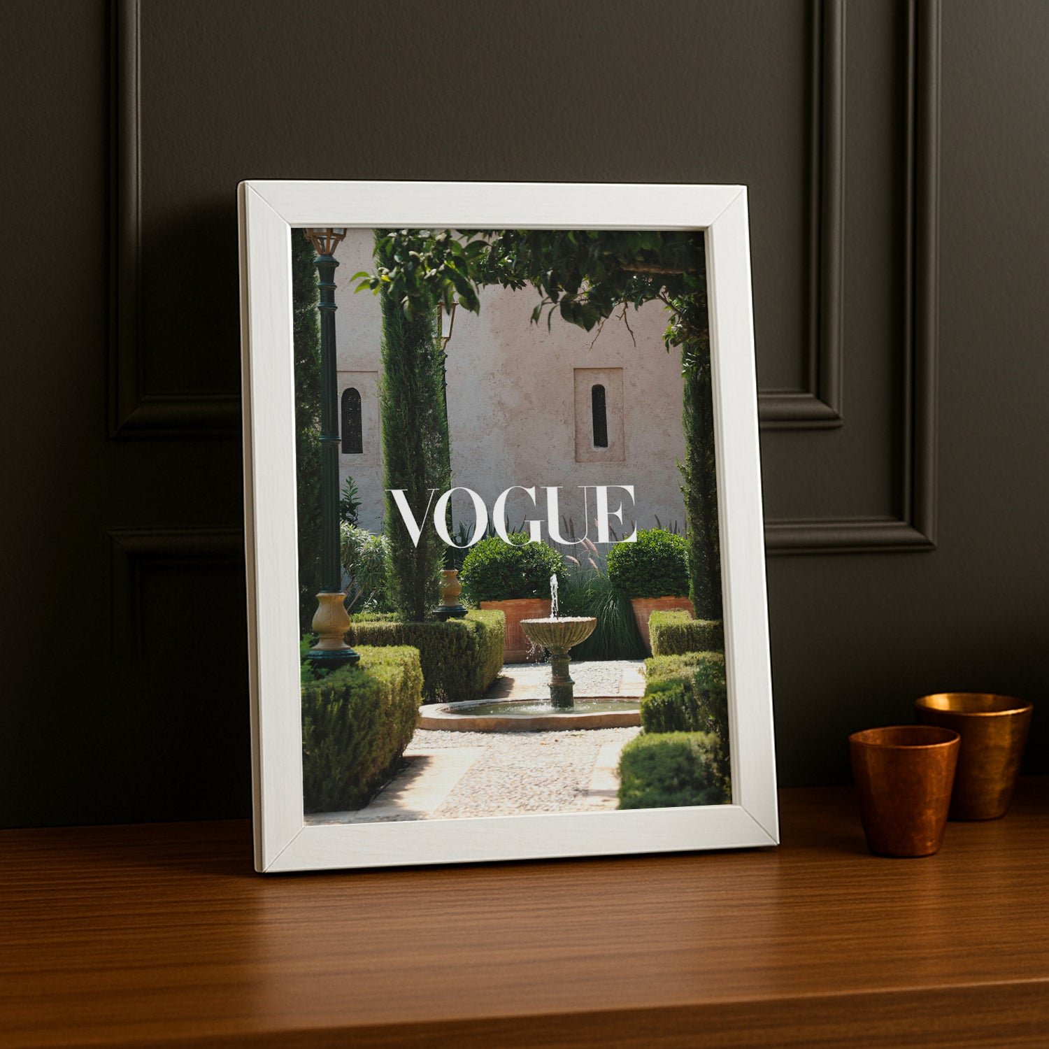 Laissez couler la sérénité avec ce poster photo Vogue mettant en vedette une majestueuse fontaine ! Un design intemporel et apaisant qui capture la tranquillité et l'élégance architecturale. Parfait pour créer une ambiance zen et contemplative, ce poster ajoute une touche de calme et de sophistication à votre intérieur. Un accessoire déco qui invite à la détente et à la réflexion !