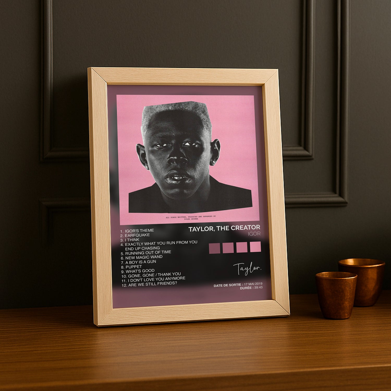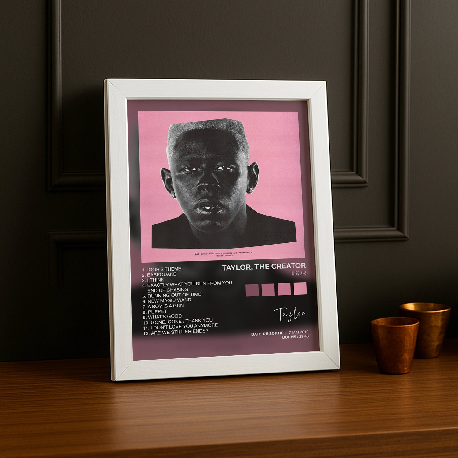 Apporte une touche artistique et audacieuse à ta déco avec ce poster exclusif de l’album "Igor" de Tyler, The Creator. Ce visuel coloré et unique capture l’essence créative et avant-gardiste d’un des albums les plus innovants du hip-hop moderne.