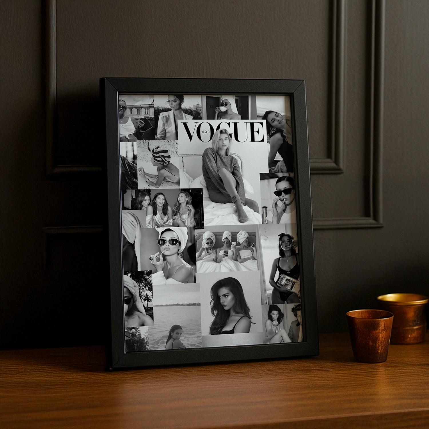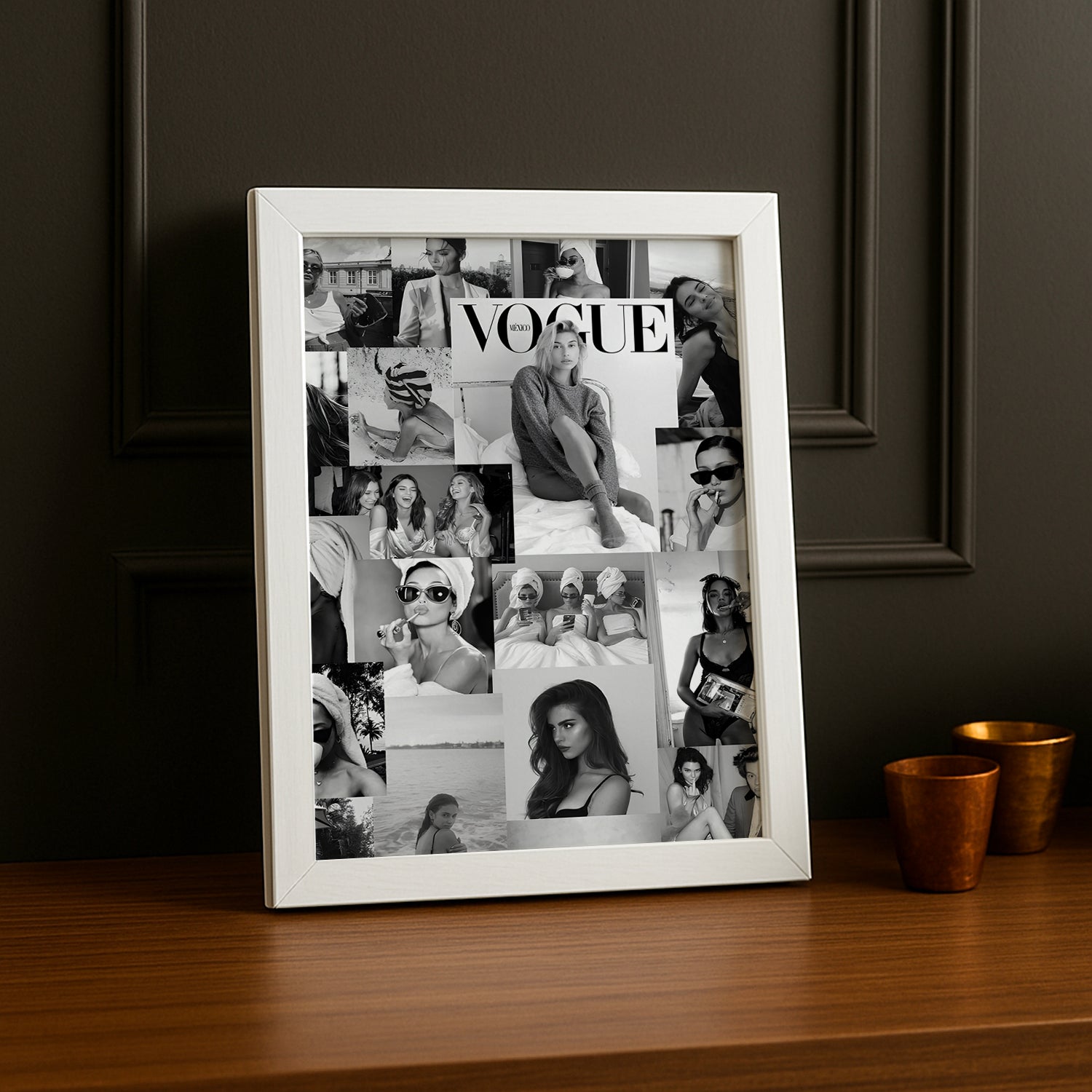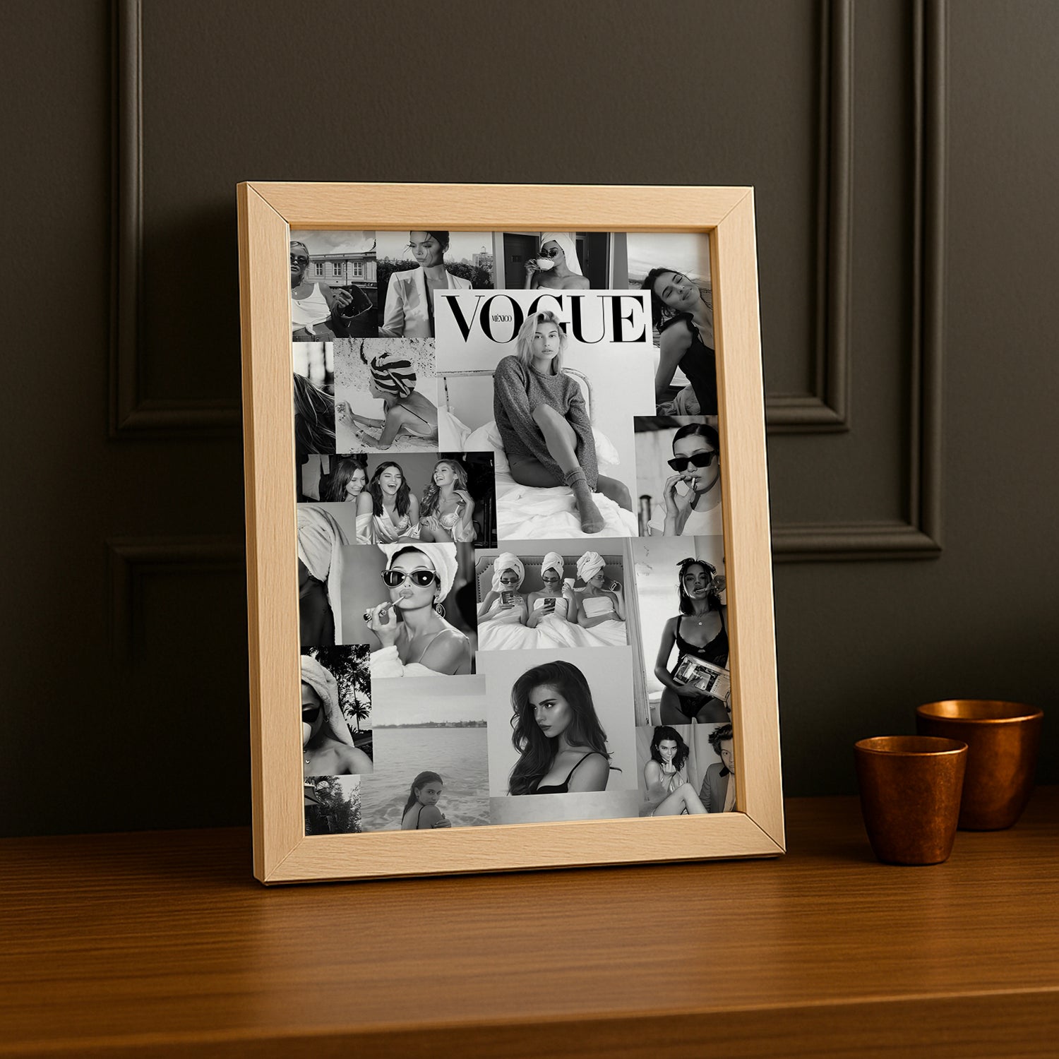 Sublimez votre décoration avec ce cadre photo inspiré du magazine Vogue, symbole intemporel de la mode, de l'élégance et du raffinement. Avec son esthétique chic et minimaliste, ce visuel capturant l’univers de la haute couture ajoutera une touche fashion et artistique à vos murs.