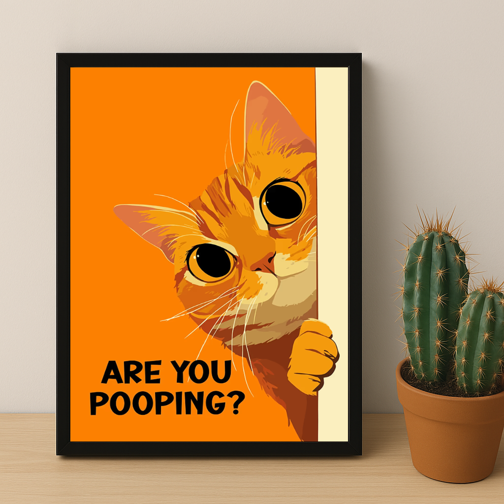 Apportez une touche de fun à votre déco avec le cadre photo "Chat orange Are You Pooping". Ce cadre met en scène un chat roux dans une situation drôle et inattendue, parfait pour faire sourire et ajouter une note espiègle à votre intérieur. Un choix idéal pour les fans de chats au caractère malicieux !