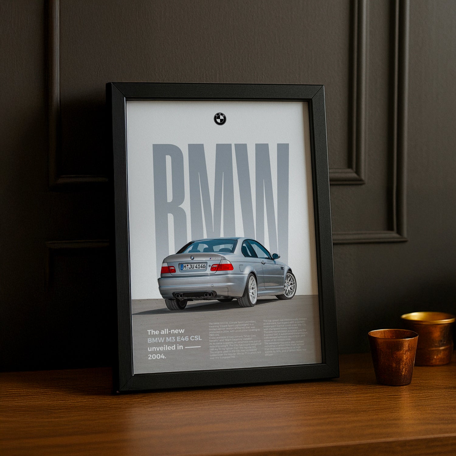 Donnez du caractère à vos murs avec ce poster de la BMW M3 E46 CSL ! Avec son look unique et sa performance légendaire, cette édition spéciale met de l’énergie et du style dans votre déco. Parfait pour les fans de voitures qui aiment allier fun et élégance sportive au quotidien.